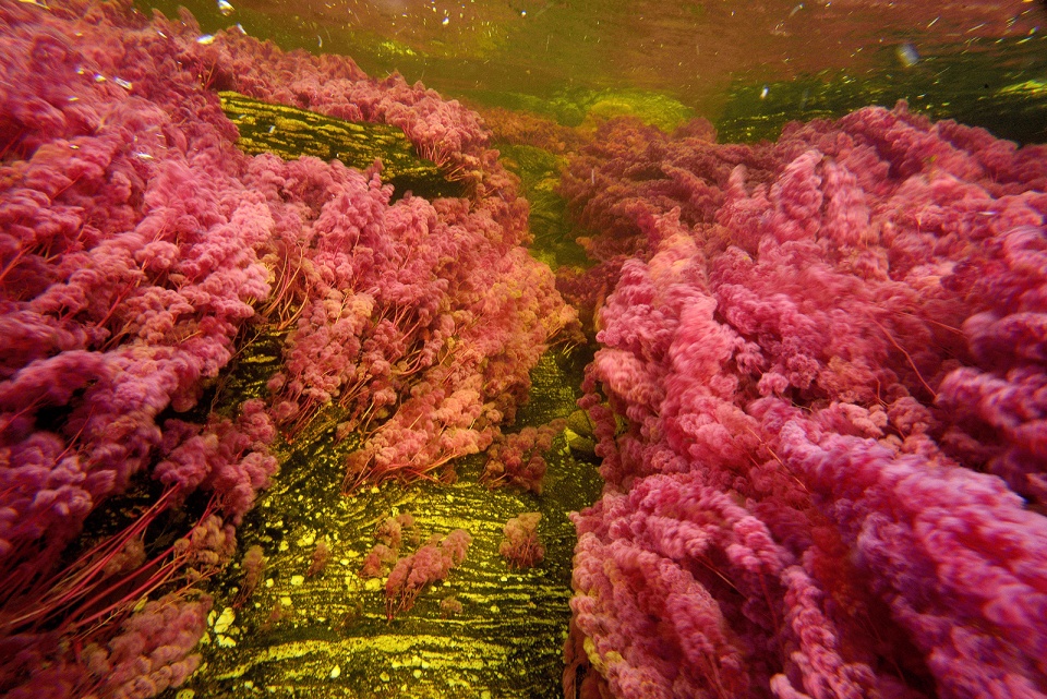Az algák színe a vöröstől, a sárgán, a piroson keresztül a zöldig terjedhet, ami a vízesésektől és az érdekes szikla alakzatoktól közre fogva még szebb látvánnyal kecsegteti az utazót. A folyó legszebb szakasza a La Macarena település közelében halad, de megfelelő infrastruktúra hiányában öszvér háton tudjuk csak megtenni az utat a látványosságig! Sajnos a terület sokáig a kormányellenes gerillák ellenőrzése alatt állt, így megnehezítve a terület látogatását, azonban a közelmúltban ismét látogatható a Nemzeti Park, bár a kormány a természet megóvása érdekében csupán napi 20 látogatót engedélyez kísérővel a területre lépni!