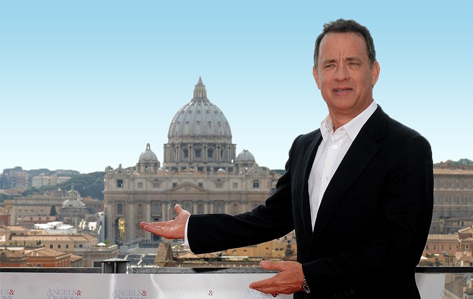 Persze voltak eredeti helyszínre tervezett forgatások is. Így például az egyik jelenet a Piazza Navonán játszódik, ahová minden engedély a stáb rendelkezésére állt, azonban a kulcsfontosságú szökőkutat éppen beállványozták. Ennek a fenekén kell Tom Hanksnek nagy küzdelem árán megmenti az egyik bíborost.