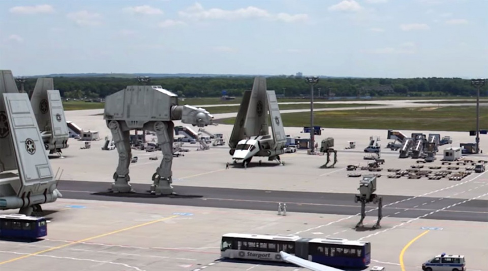 A videó feltöltője szerint ez egy kiszivárgott felvétel a Star Wars VII. forgatásáról, amely a Földön is játszódik, és a Birodalom a frankfurti repteret használja. Szerintünk csak egy ügyes 3D-s videó kreálmány...