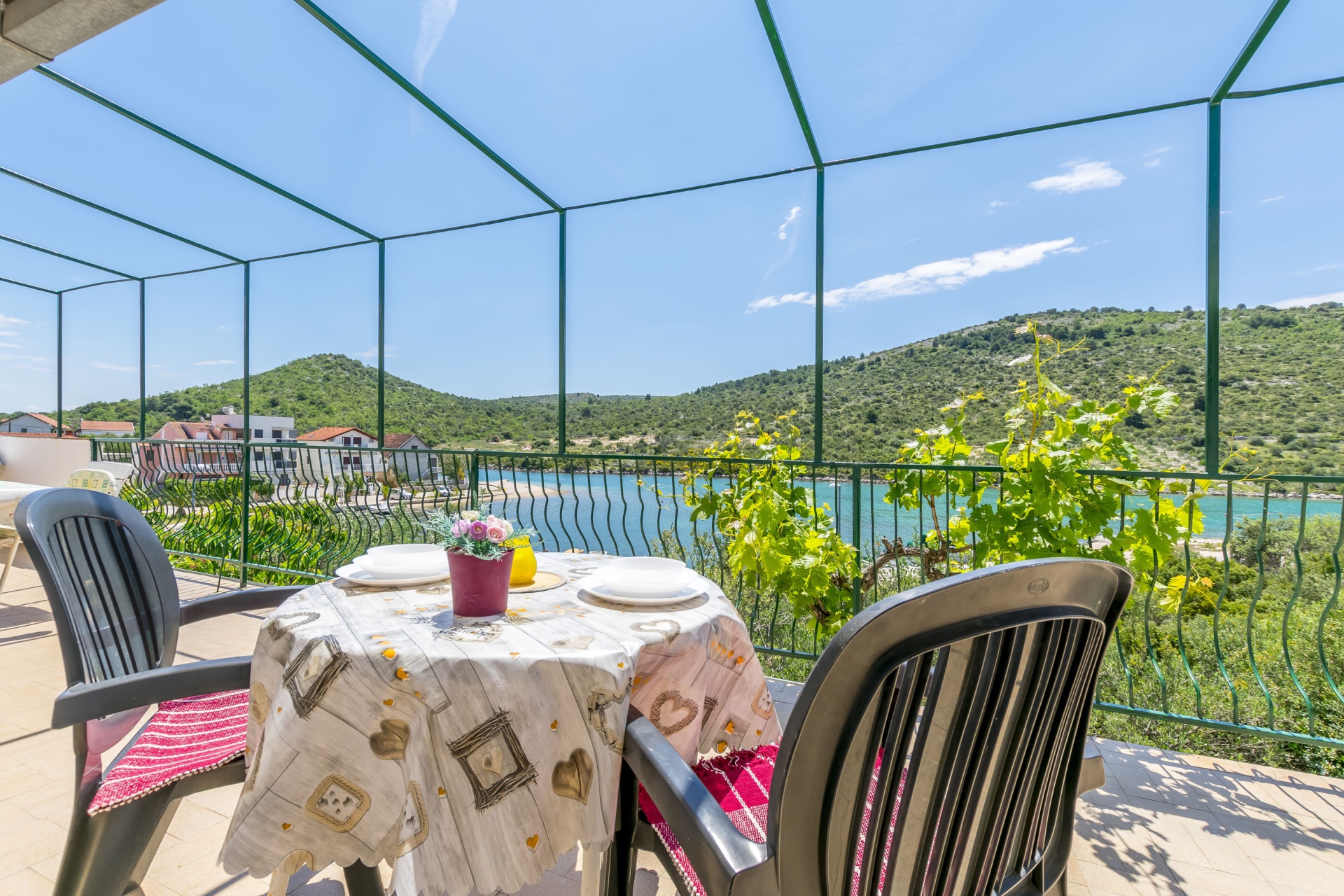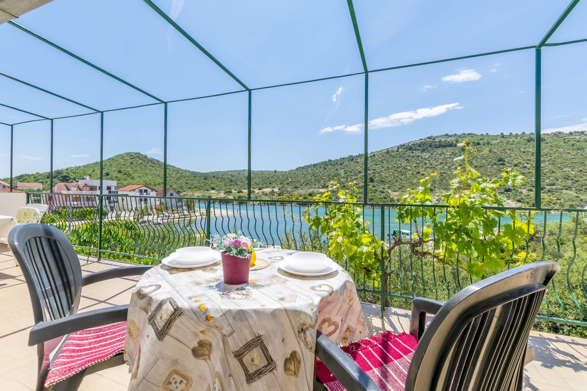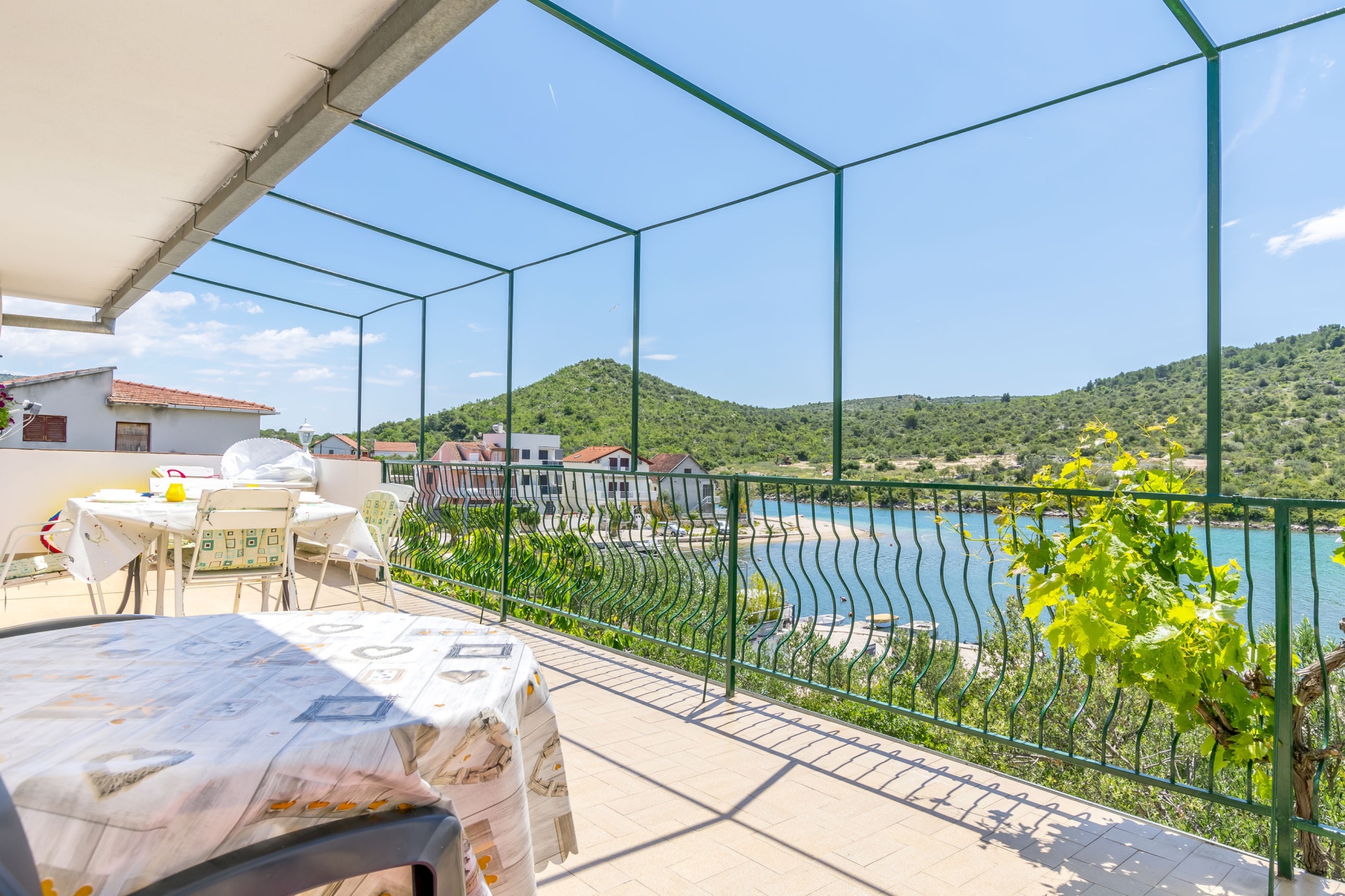 Apartman 4Fő Általános információ Kategória: 3 Emelet: első emelet Típus: A4 Felület: 45 m2 Kilátás: tengerre és zöldövezetre Berendezés és felszereltség Klíma: helyiség része Internet: vezeték nélküli Gyerekágy: kérésre Vasaló: Igen Ágynemű és törölközők: Igen Önkiszolgáló bejelentkezés: Host check-in Az adott többletszolgáltatás felára a helyszínen fizetendő Klíma: felár nélkül Internet: felár nélkül További információ és szolgáltatás Takarítás: vendégváltáskor Konyha és nappali Edények és evőeszközök: Igen Sütő: Igen Főzőlap: Igen Hűtőgép: Igen Fagyasztó: Igen Mikrohullámú sütő: Igen Kávéfőző: Igen Vízforraló: Igen A kert felszerletsége Kültéri zuhanyzó: Igen Megosztott erkély, amely minden vendég és szolgáltató számára elérhető: 30 m2 Fürdőszoba információ Zuhanyzós fürdőszobák száma: 1 Hajszárító: Igen Adatok a szobákról 1 Kétszemélyes ágyak száma: 1 A szoba alapterülete: 12 m2 Szoba kapacitás: 2 Adatok a szobákról 2 Szoba kapacitás: 2 Egyágyas ágyak száma: 2 A szoba alapterülete: 10 m2