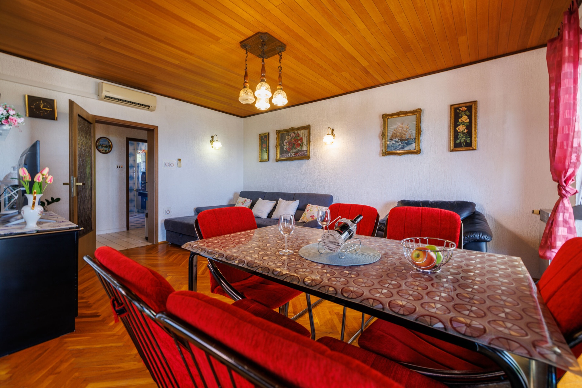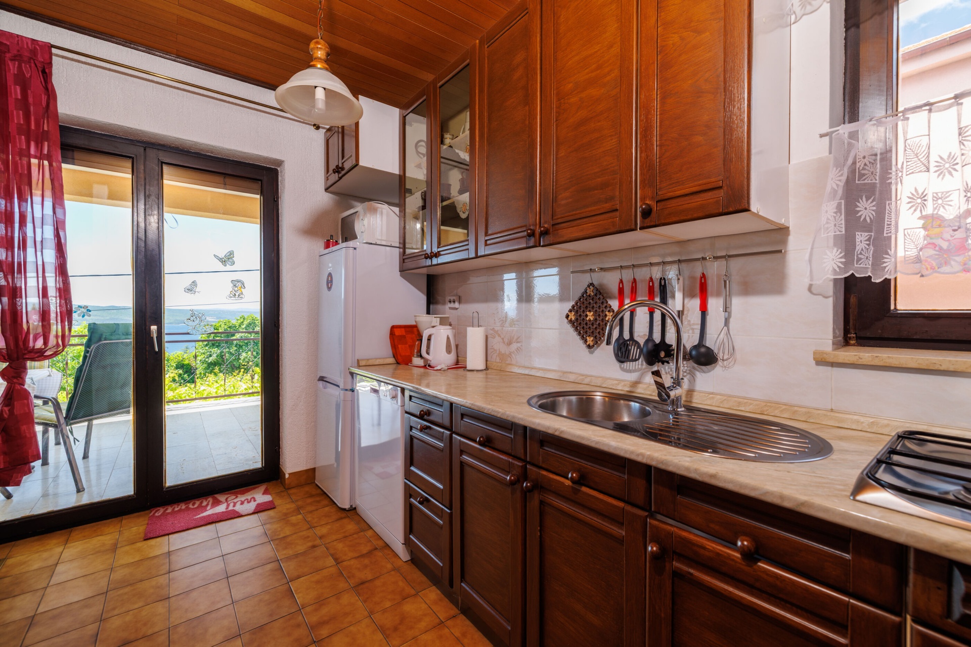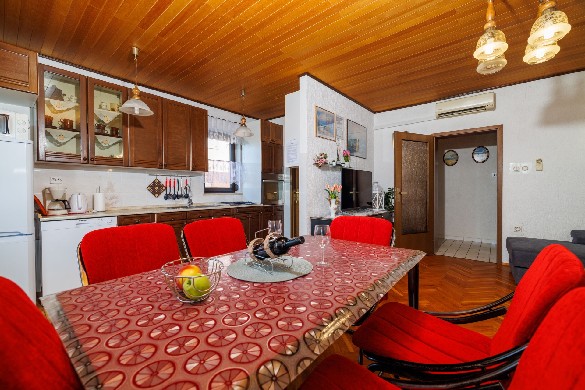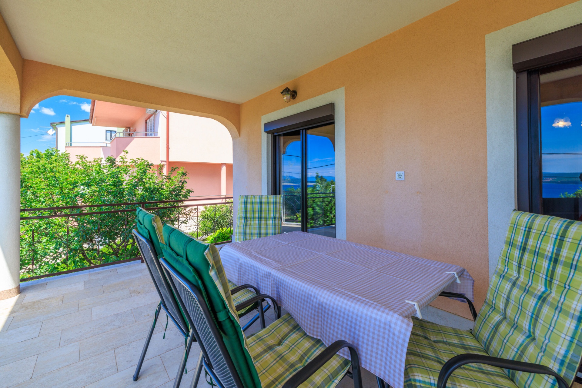 Apartman 4Fő Általános információ Felület: 55 m2 Háziállatok: Háziállat barát szálláshely- az irodával történt előzetes egyeztetés alapján (felár a helyszínen a szállásadónak fizetendő) Típus: A2+2 Kilátás: tengerre és zöldövezetre Emelet: első emelet Kategória: 3 Berendezés és felszereltség Ágynemű és törölközők: Igen Internet: vezeték nélküli Vasaló: Igen Klíma: helyiség része Fűtés: helyiség része Önkiszolgáló bejelentkezés: Host check-in Fürdőszoba információ Fürdőkádas fürdőszobák száma: 1 Hajszárító: Igen Konyha és nappali Toszter: Igen Pótágyak száma (nappaliban, étkezőben, konyhában): 2 Főzőlap: Igen Hűtőgép: Igen Edények és evőeszközök: Igen Sütő: Igen Mosogatógép: Igen Kávéfőző: Igen Vízforraló: Igen Fagyasztó: Igen Mikrohullámú sütő: Igen A kert felszerletsége Terasz: 15 m2 További információ és szolgáltatás Takarítás: vendégváltáskor Az adott többletszolgáltatás felára a helyszínen fizetendő Internet: felár nélkül Klíma: felár nélkül Fűtés: felár nélkül Háziállat: 10 €/nap Adatok a szobákról 1 Szoba kapacitás: 2 Kétszemélyes ágyak száma: 1 A szoba alapterülete: 12 m2