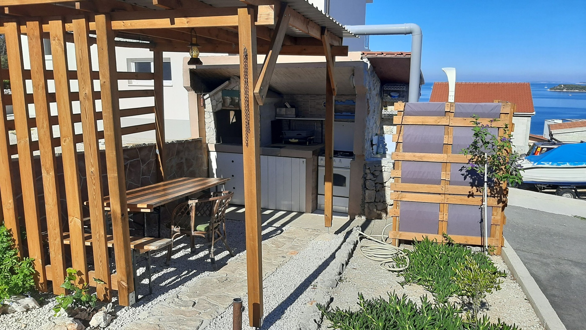Apartman 2Fő Konyha és nappali Főzőlap: Igen Sütő: Igen Vízforraló: Igen Edények és evőeszközök: Igen Kávéfőző: Igen Toszter: Igen Hűtőgép: Igen Kétszemélyes ágyak száma: 0 Általános információ Típus: STUDIO Kategória: 3 Emelet: földszint Kilátás: tengerre és zöldövezetre Felület: 20 m2 Akadálymentes szálláshely: Igen Berendezés és felszereltség Internet: vezeték nélküli Ágynemű és törölközők: Igen Önkiszolgáló bejelentkezés: Host check-in Mosógép: Igen Klíma: helyiség része Az adott többletszolgáltatás felára a helyszínen fizetendő Internet: felár nélkül Klíma: felár nélkül További információ és szolgáltatás Takarítás: vendégváltáskor Stúdió apartman Kétszemélyes ágy: 1 Ágyak száma: 2 Extra ágy: 0 A kert felszerletsége Kültéri zuhanyzó: Igen Lodzsa: 3 m2 Udvar: 100 m2 Fürdőszoba információ Zuhanyzós fürdőszobák száma: 1 Letéti díj a helyszínen fizetendő Megjegyzés: A szálláshely igénybevételének első napján a vendég köteles a szállásadónál 50 € letéti díjjt fizetni, amelyet a szállásfoglalás utolsó napján visszakap, amennyiben a szálláshelyet sértetlen állapotban adja vissza