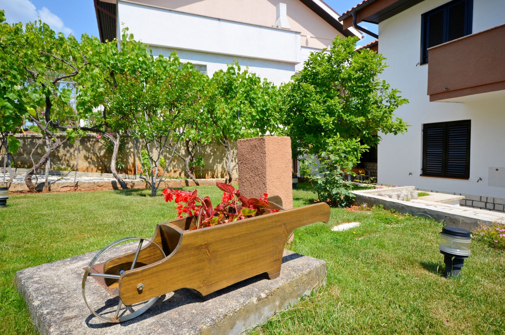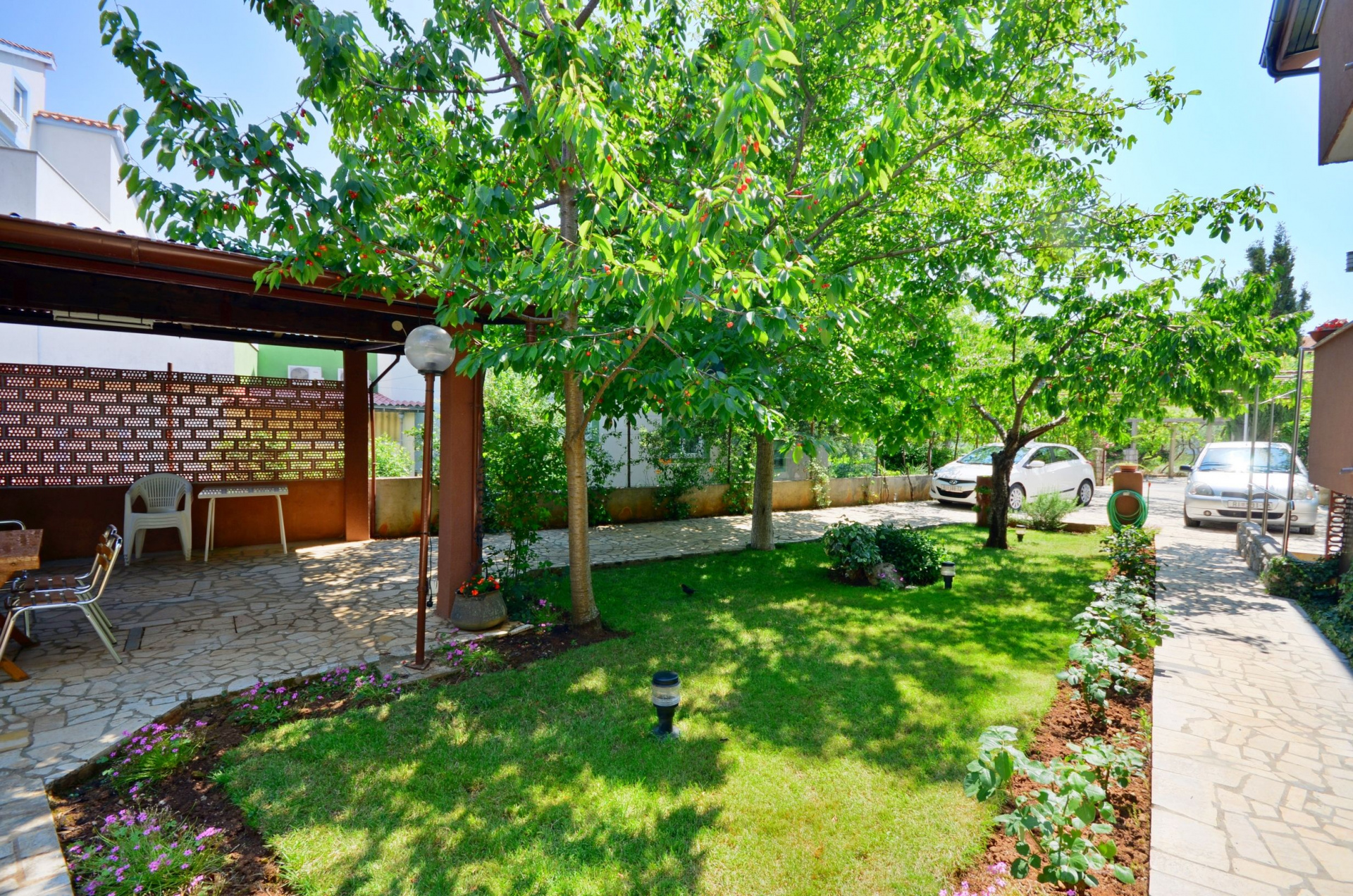 Apartman 5Fő További információ és szolgáltatás Takarítás: vendégváltáskor Berendezés és felszereltség Radiókészülék: Igen Fűtés: az összes szoba Vasaló: Igen Ágynemű és törölközők: Igen Internet: vezeték nélküli Klíma: helyiség része Konyha és nappali Edények és evőeszközök: Igen Fagyasztó: Igen Hűtőgép: Igen Sütő: Igen Kávéfőző: Igen Főzőlap: Igen Vízforraló: Igen Mikrohullámú sütő: Igen Pótágyak száma (nappaliban, étkezőben, konyhában): 1 Fürdőszoba információ Hajszárító: kérésre Zuhanyzós fürdőszobák száma: 2 Általános információ Kategória: 4 Kilátás: zöldövezetre Emelet: földszint Típus: A4+1 Az apartman mérete: 77 m2 Balkon/terasz/kert A többi vendéggel vagy a szállásadóval közösen használandó helyiség: 100 m2 Terasz: 25 m2 Az adott többletszolgáltatás felára a helyszínen fizetendő Fűtés: felár nélkül Internet: felár nélkül Klíma: felár nélkül Adatok a szobákról 1 Szoba kapacitás: 2,00 Terasz/Erkély: Igen Kétszemélyes ágyak száma: 1,00 Adatok a szobákról 2 Kétszemélyes ágyak száma: 1,00 Szoba kapacitás: 2,00 Terasz/Erkély: Igen