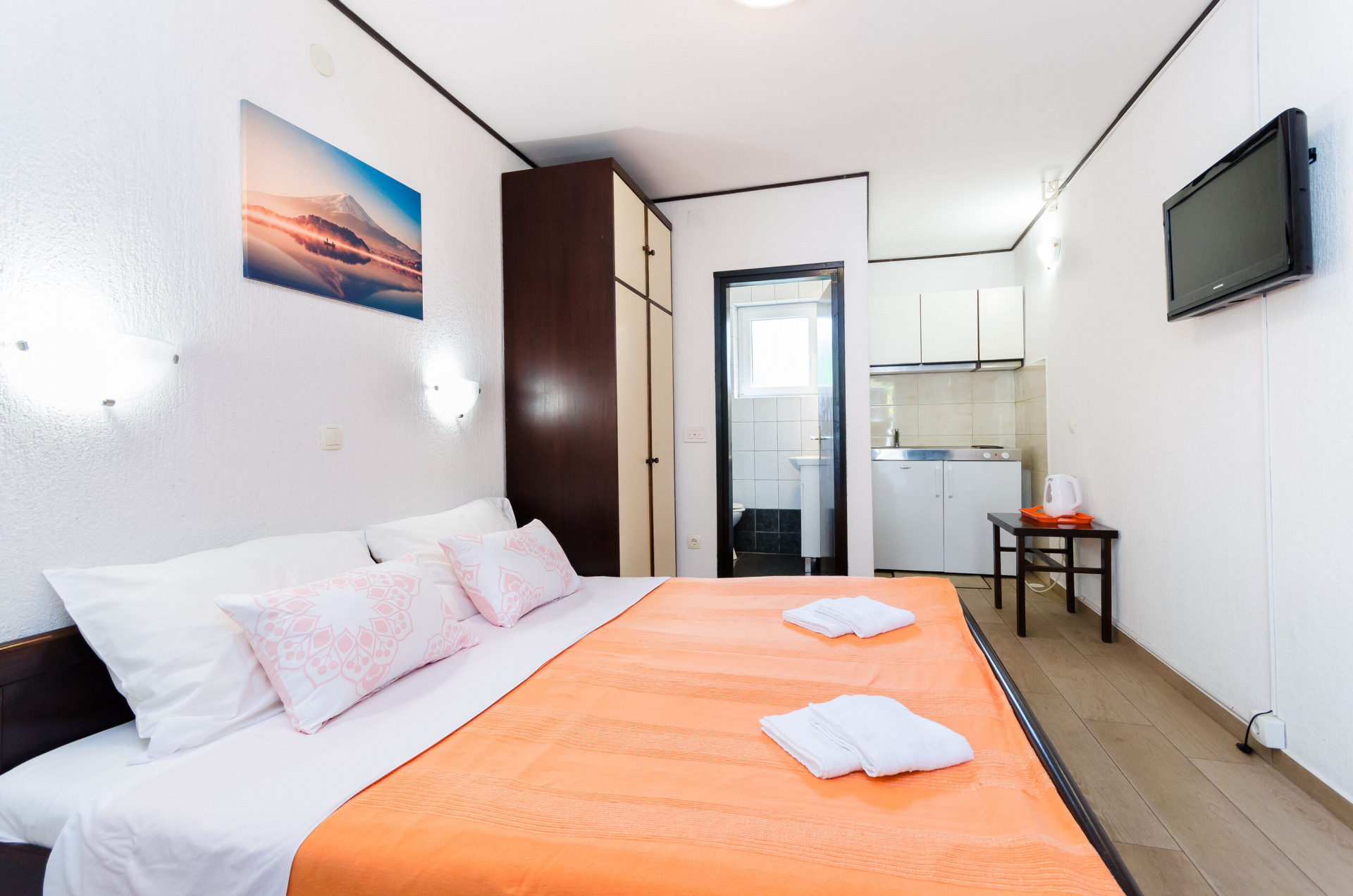 Apartman 2Fő Konyha és nappali Hűtőgép: Igen Edények és evőeszközök: Igen Főzőlap: Igen Stúdió apartman Ágyak száma: 2 Kétszemélyes ágy: 1 Általános információ Típus: STUDIO Emelet: földszint Az apartman mérete: 18 m2 Kategória: 3 Kilátás: zöldövezetre és udvarra Fürdőszoba információ Zuhanyzós fürdőszobák száma: 1 Hajszárító: kérésre Balkon/terasz/kert Terasz: 10 m2 A többi vendéggel vagy a szállásadóval közösen használandó helyiség: 100 m2 Berendezés és felszereltség Klíma: helyiség része Vasaló: kérésre Ágynemű és törölközők: Igen Fűtés: helyiség része Internet: vezeték nélküli További információ és szolgáltatás Takarítás: vendégváltáskor Az adott többletszolgáltatás felára a helyszínen fizetendő Klíma: felár nélkül Fűtés: felár nélkül Internet: felár nélkül