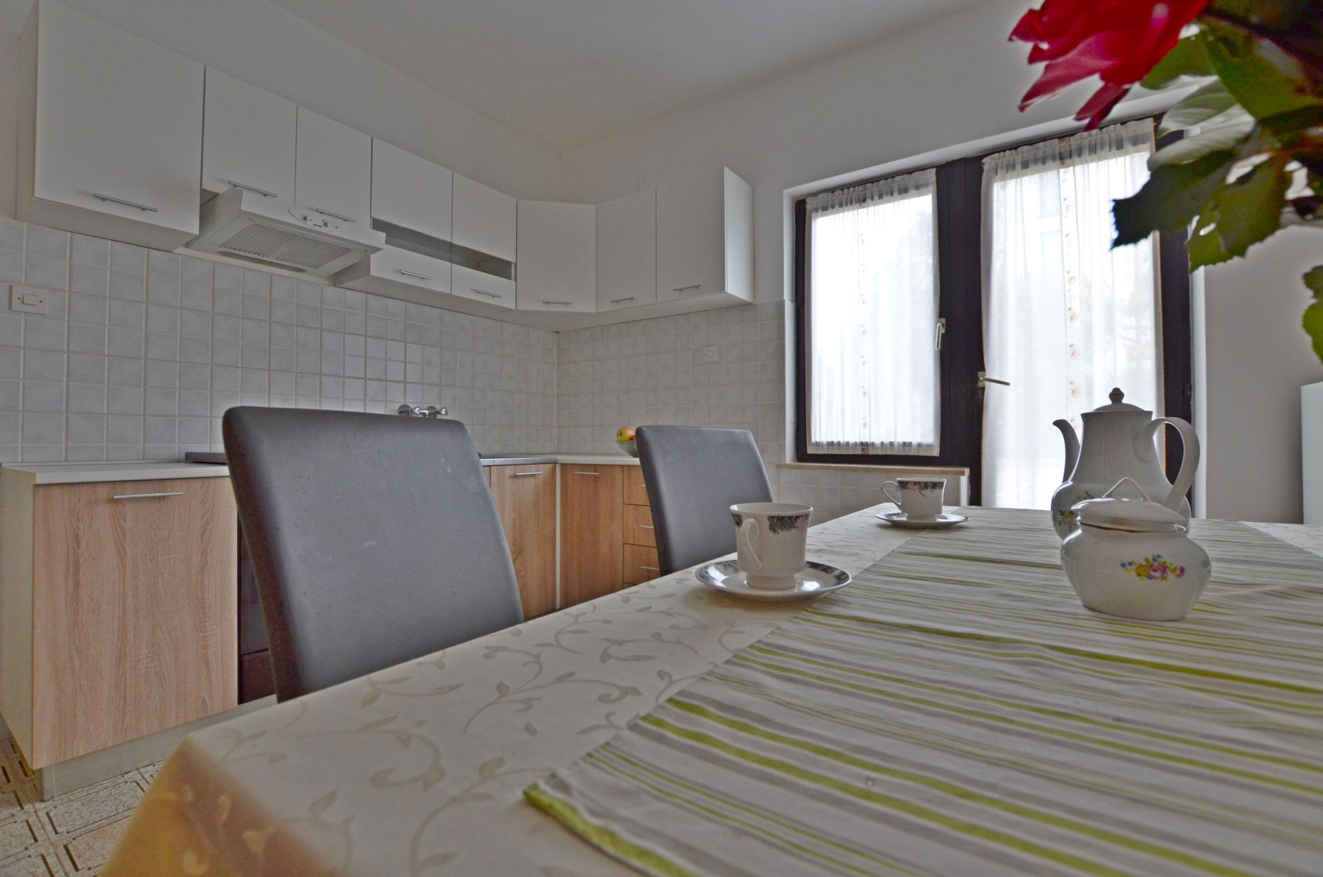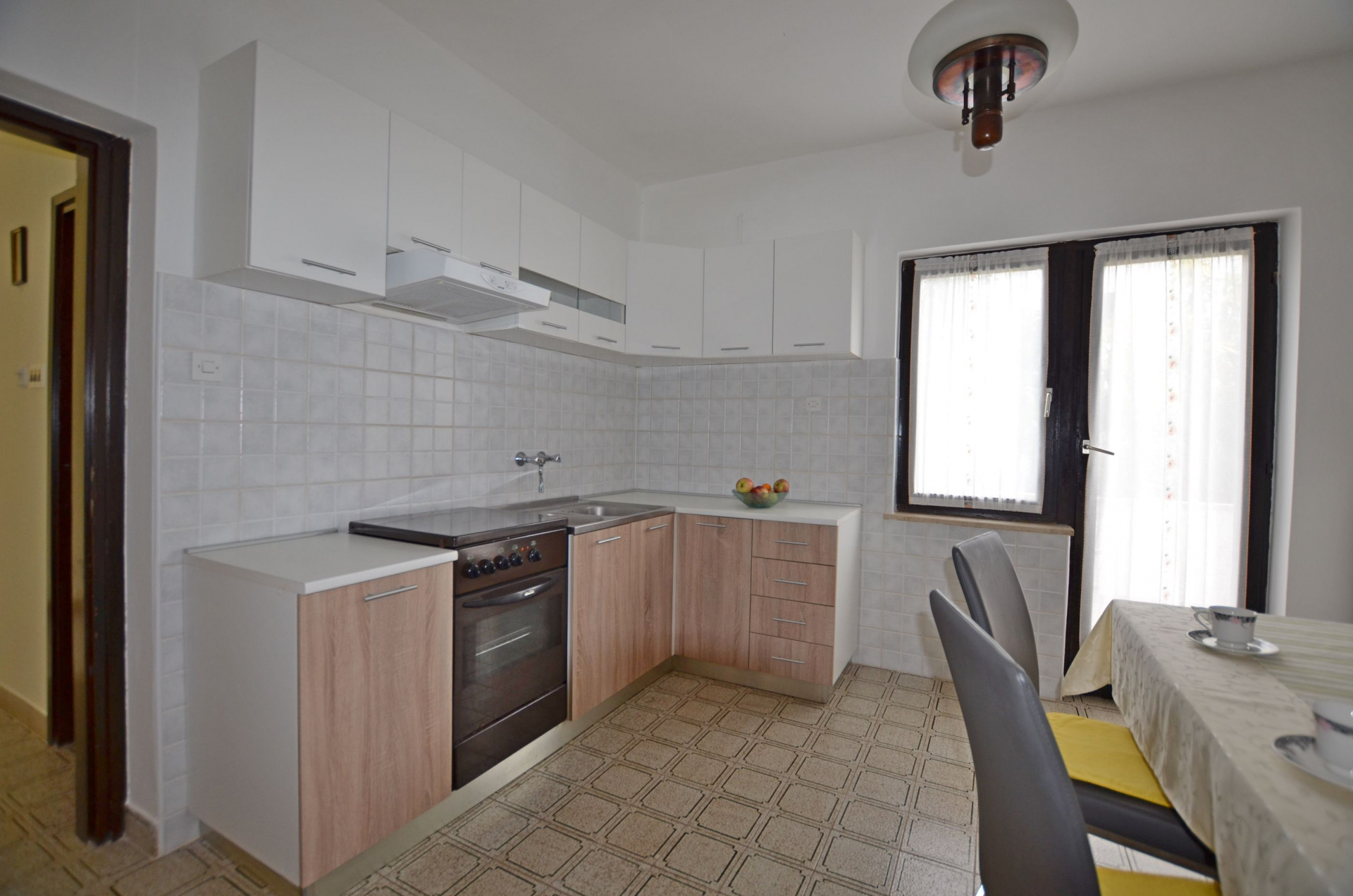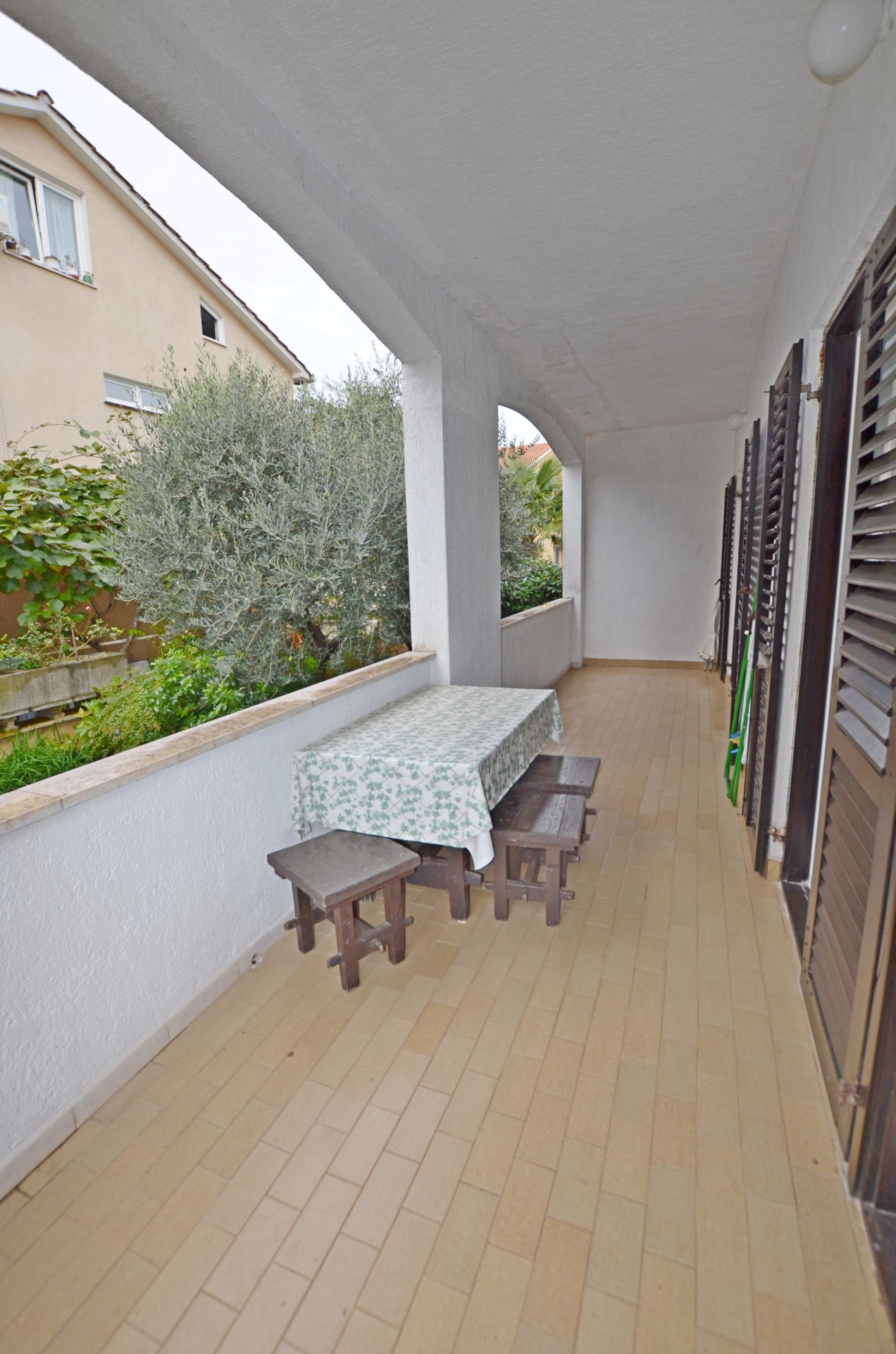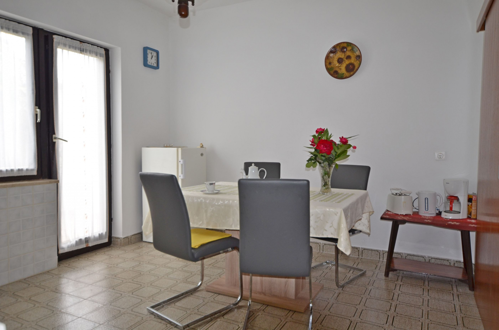 Apartman 3Fő Általános információ Kategória: 3 A dohányzás megengedett: Igen Emelet: földszint Típus: A2+1 Háziállatok: Háziállat barát szálláshely- az irodával történt előzetes egyeztetés alapján (felár a helyszínen a szállásadónak fizetendő) Az apartman mérete: 50 m2 Kilátás: zöldövezetre és udvarra Berendezés és felszereltség Fűtés: helyiség része Klíma: helyiség része Radiókészülék: Igen Internet: vezeték nélküli Vasaló: Igen Mosógép: Igen Ágynemű és törölközők: Igen Self check-in: Host check-in Az adott többletszolgáltatás felára a helyszínen fizetendő Háziállat: 8 €/nap Klíma: felár nélkül Internet: felár nélkül További információ és szolgáltatás Takarítás: vendégváltáskor Konyha és nappali Edények és evőeszközök: Igen Sütő: Igen Főzőlap: Igen Hűtőgép: Igen Fagyasztó: Igen Kávéfőző: Igen Vízforraló: Igen Toszter: Igen Balkon/terasz/kert Terasz: 10 m2 A többi vendéggel vagy a szállásadóval közösen használandó helyiség: 150 m2 Fürdőszoba információ Zuhanyzós fürdőszobák száma: 1 Hajszárító: Igen Adatok a szobákról 1 Szoba kapacitás: 3 Kétszemélyes ágyak száma: 1 Terasz/Erkély: Igen Pótágyak száma: 1 A szoba alapterülete: 22 m2