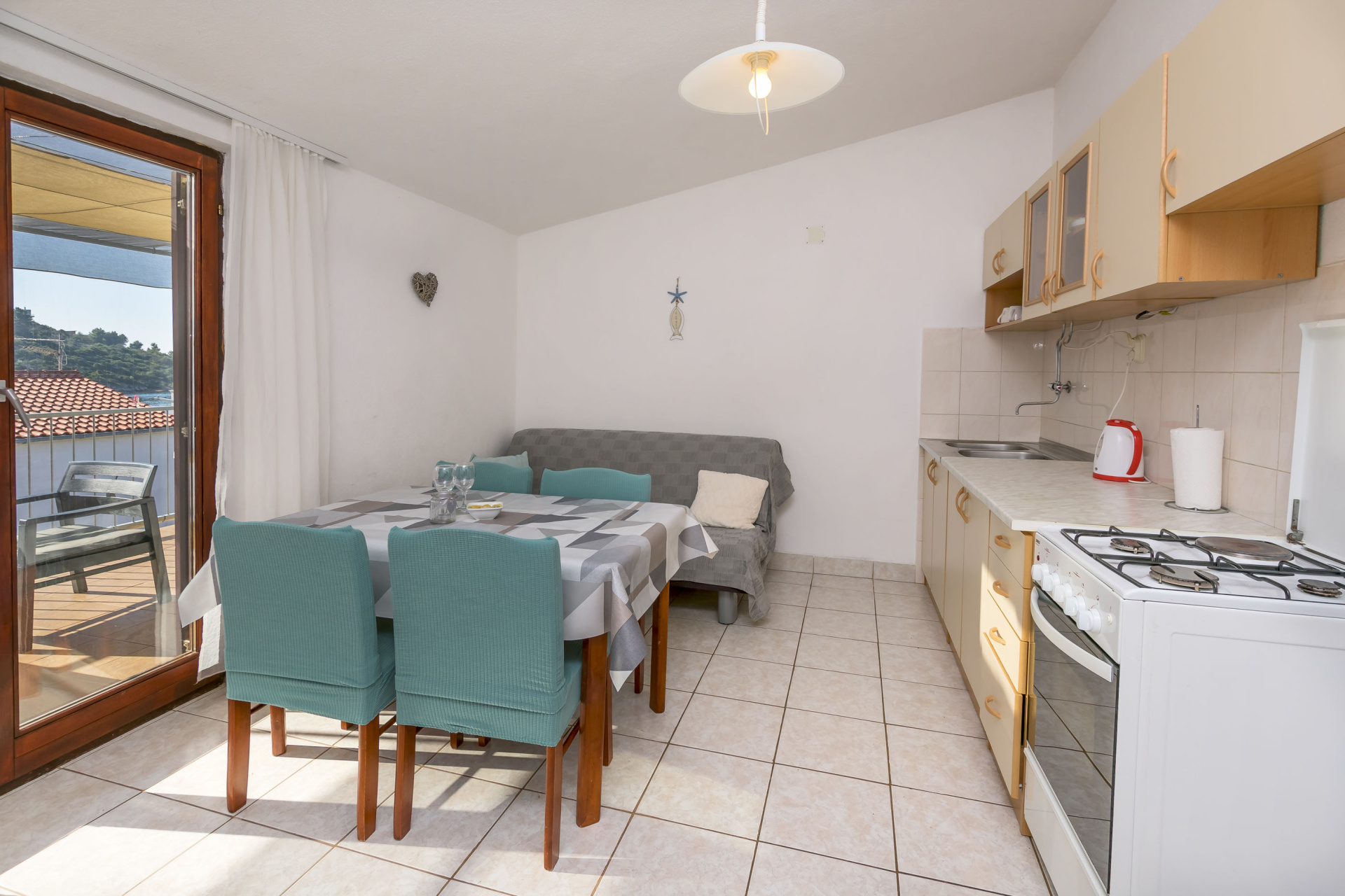 Apartman 7Fő Általános információ Kategória: 3 Emelet: első emelet Típus: A6+1 Az apartman mérete: 65 m2 Kilátás: tengerre Berendezés és felszereltség Internet: Igen Ágynemű és törölközők: Igen Az adott többletszolgáltatás felára a helyszínen fizetendő Internet: felár nélkül További információ és szolgáltatás Takarítás: vendégváltáskor Konyha és nappali Edények és evőeszközök: Igen Sütő: Igen Főzőlap: Igen Hűtőgép: Igen Fagyasztó: Igen Vízforraló: Igen Mosogatógép: Igen Balkon/terasz/kert Kültéri zuhanyzó: Igen Terasz: 25 m2 Fürdőszoba információ Fürdőkádas fürdőszobák száma: 1 Toalett száma mosdóval: 1 Adatok a szobákról 1 Szoba kapacitás: 3,00 Pótágyak száma: 1,00 A szoba alapterülete: 20,00 m2 Kétszemélyes ágyak száma: 1,00 Adatok a szobákról 2 Kétszemélyes ágyak száma: 1,00 A szoba alapterülete: 12,00 m2 Szoba kapacitás: 2,00 Adatok a szobákról 3 Szoba kapacitás: 2,00 A szoba alapterülete: 12,00 m2 Kétszemélyes ágyak száma: 1,00