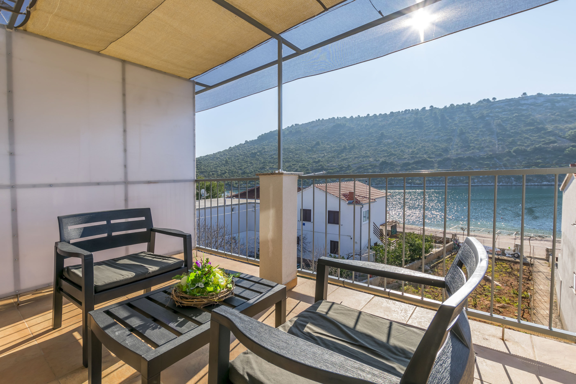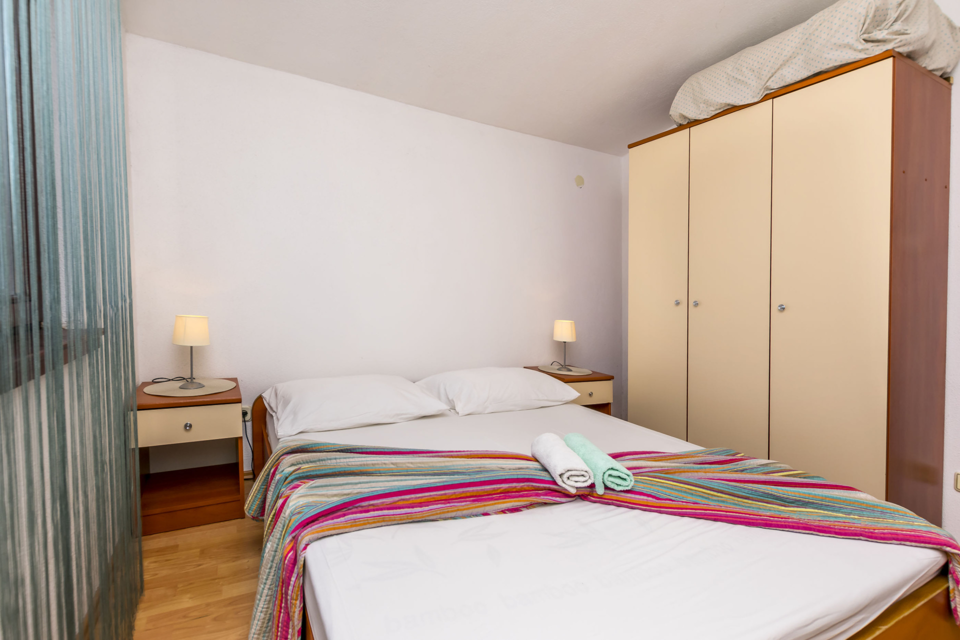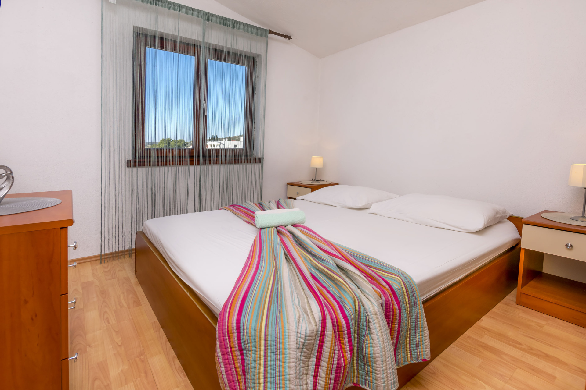 Apartman 2Fő Általános információ Kategória: 3 Emelet: második emelet Típus: A2 Az apartman mérete: 32 m2 Kilátás: tengerre Berendezés és felszereltség Klíma: helyiség része Internet: vezeték nélküli Ágynemű és törölközők: Igen Az adott többletszolgáltatás felára a helyszínen fizetendő Klíma: felár nélkül Internet: felár nélkül További információ és szolgáltatás Takarítás: vendégváltáskor Konyha és nappali Edények és evőeszközök: Igen Sütő: Igen Főzőlap: Igen Hűtőgép: Igen Fagyasztó: Igen Vízforraló: Igen Balkon/terasz/kert Kültéri zuhanyzó: Igen Terasz: 10 m2 Fürdőszoba információ Zuhanyzós fürdőszobák száma: 1 Adatok a szobákról 1 Kétszemélyes ágyak száma: 1,00 Szoba kapacitás: 2,00 A szoba alapterülete: 12,00 m2