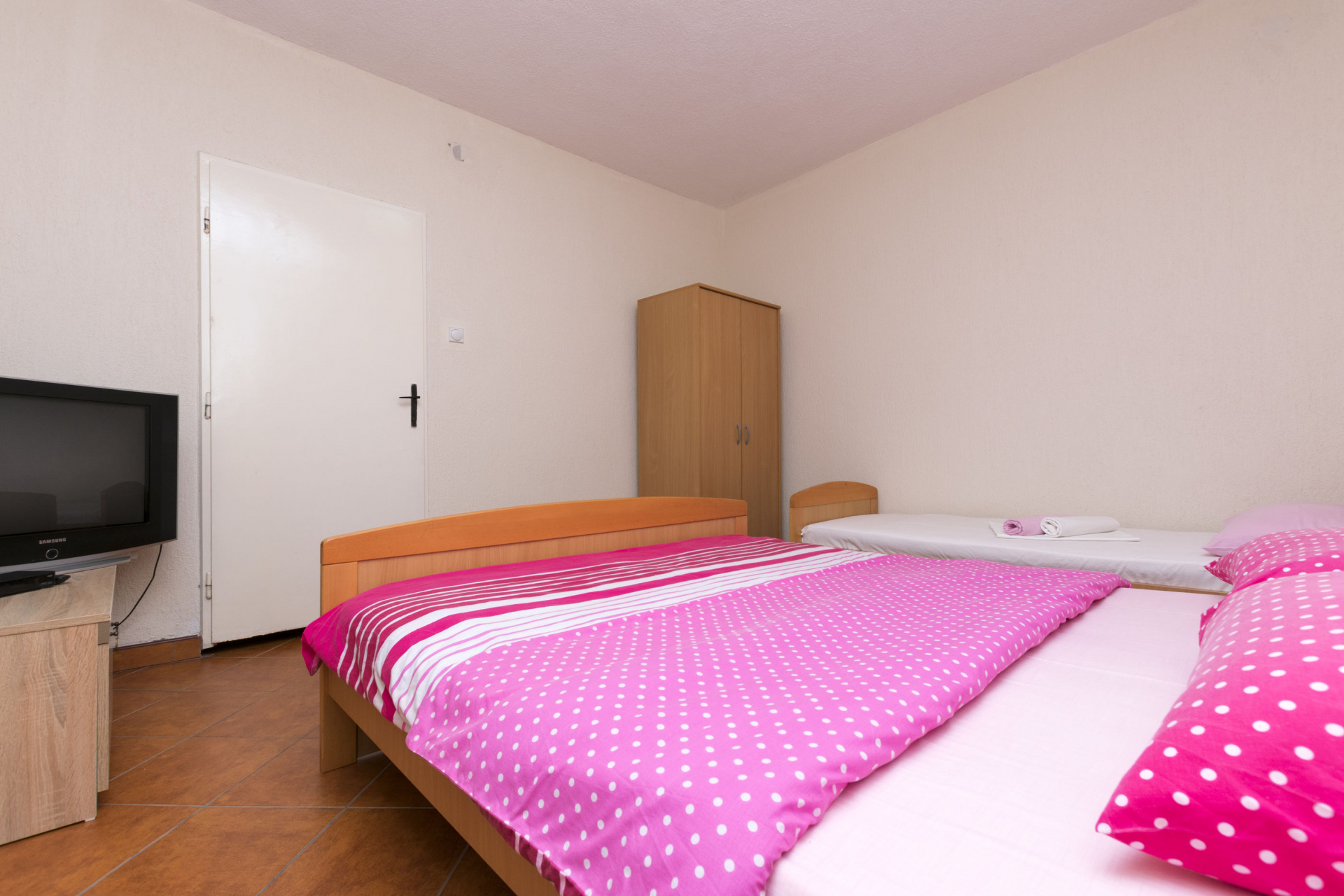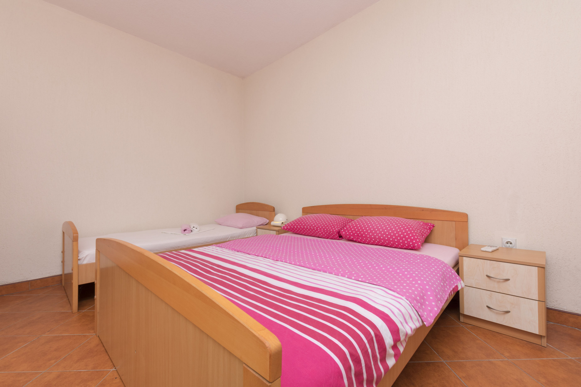 Apartman 4Fő Általános információ A dohányzás megengedett: Igen Kilátás: tengerre Emelet: földszint Felület: 30 m2 Típus: STUDIO Kategória: 3 Berendezés és felszereltség Fűtés: helyiség része Klíma: helyiség része Internet: vezeték nélküli Gyerekágy: Igen Vasaló: Igen Ágynemű és törölközők: Igen Önkiszolgáló bejelentkezés: Host check-in Az adott többletszolgáltatás felára a helyszínen fizetendő Klíma: felár nélkül Fűtés: felár nélkül Internet: felár nélkül Konyha és nappali Edények és evőeszközök: Igen Főzőlap: Igen Hűtőgép: Igen Vízforraló: Igen Mikrohullámú sütő: Igen Stúdió apartman Ágyak száma: 4 Kétszemélyes ágy: 1 Extra ágy: 2 A kert felszerletsége Megosztott terasz, amely minden vendég és szolgáltató számára elérhető: 10 m2 Fürdőszoba információ Zuhanyzós fürdőszobák száma: 1 Hajszárító: Igen
