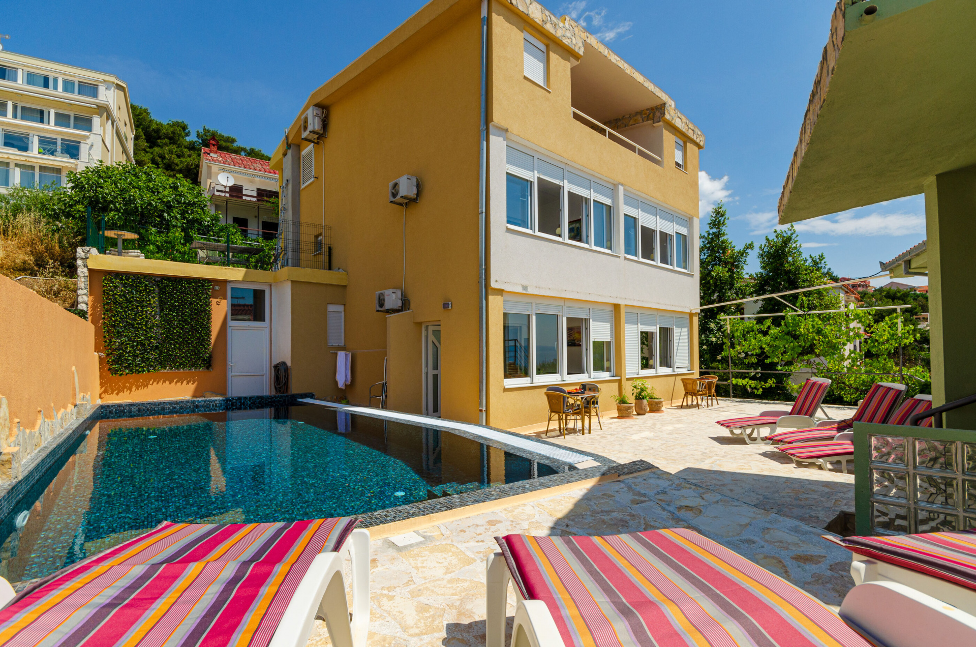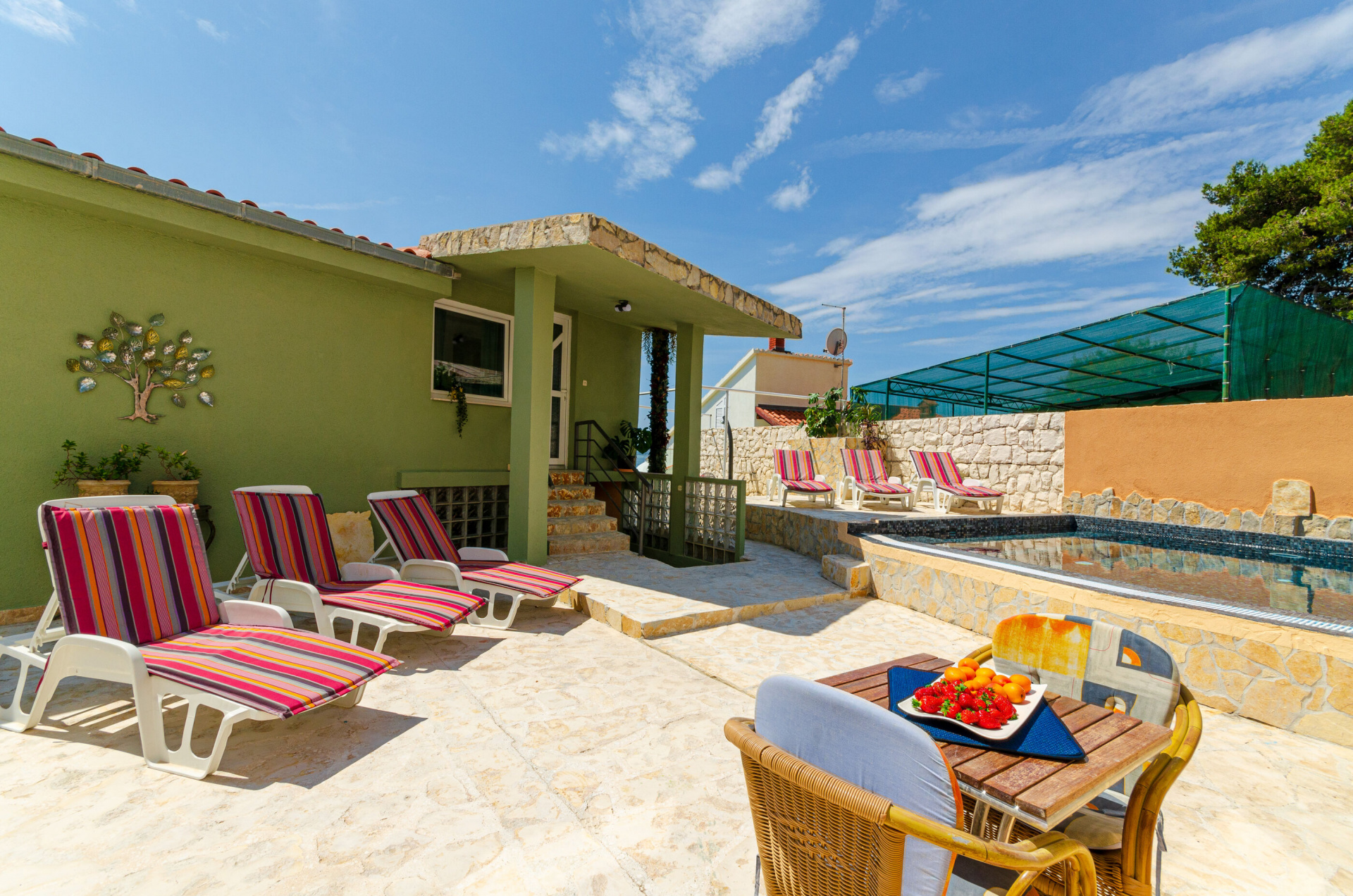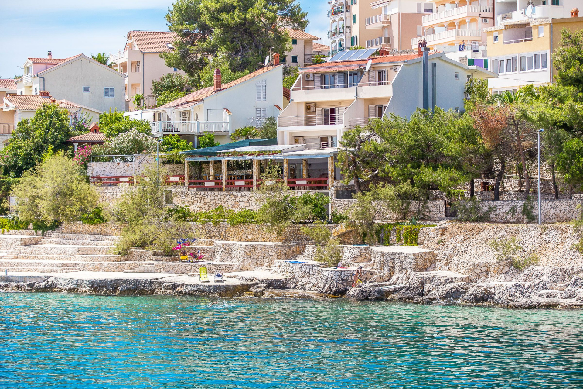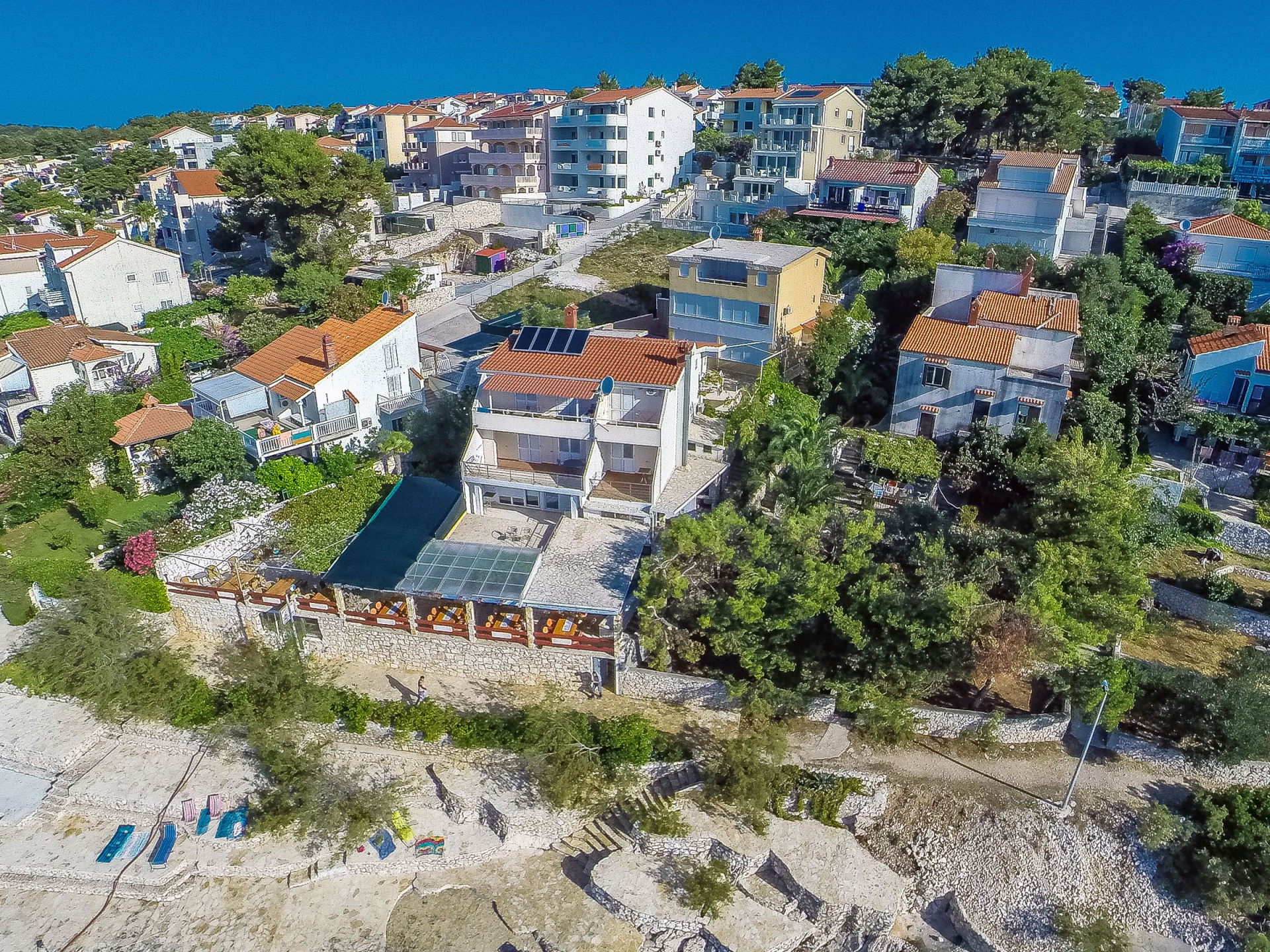 A Horvátországban található Apartmanok Ana a tengertől 20 m, a Okrug Gornji ( Čiovo-sziget) település központjától pedig 700 m található. A szállásról kilátás nyílik: tengerre. A strand típusa: betonozott felület. Ana 4 személyes, a magánszálláson 2 szoba található. A szállás berendezése: fűtés, líma, televízió, internet. Hogy a nyári hőség jobban elviselhetőbb legyen, a szálláson van klíma.