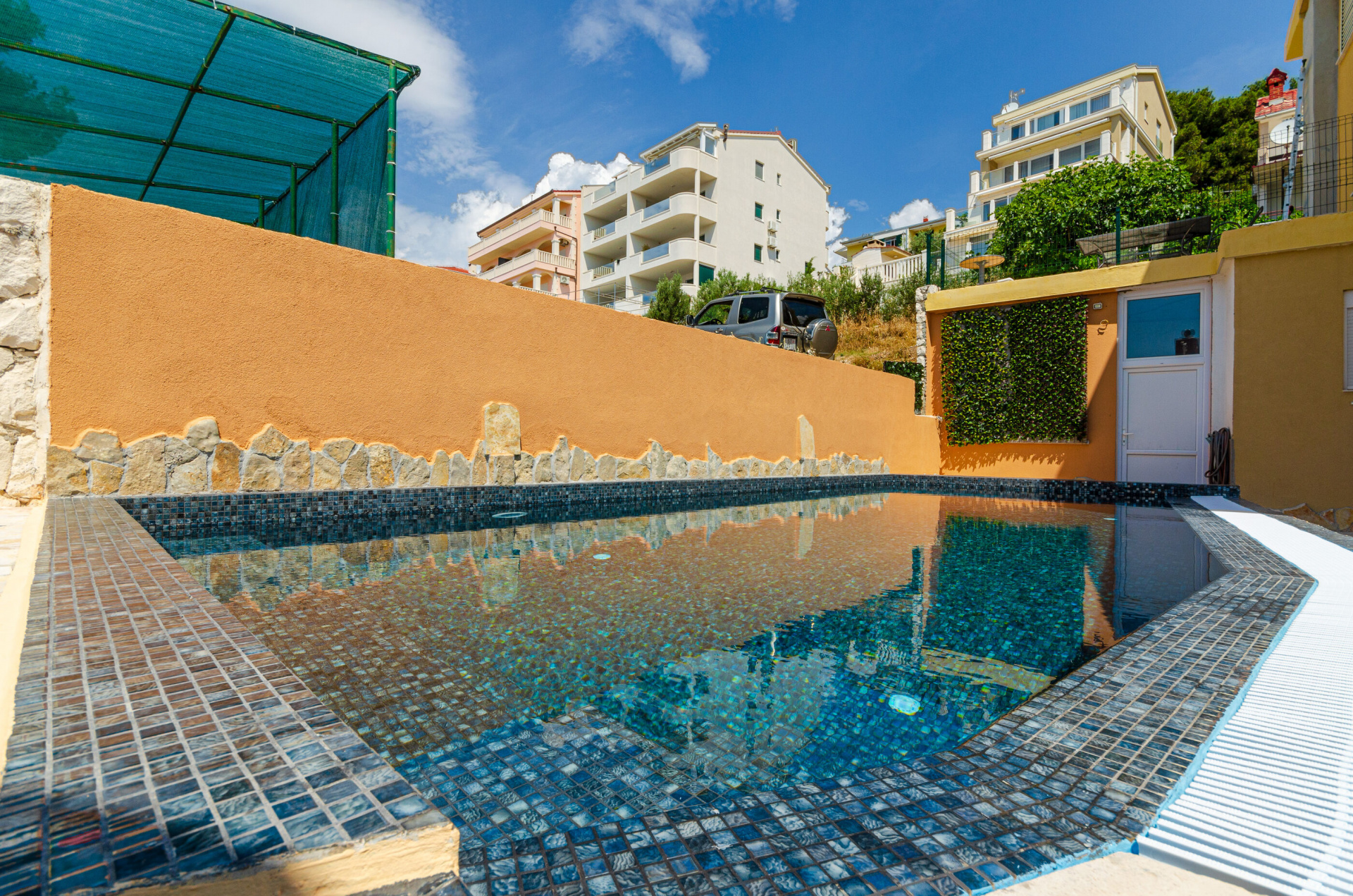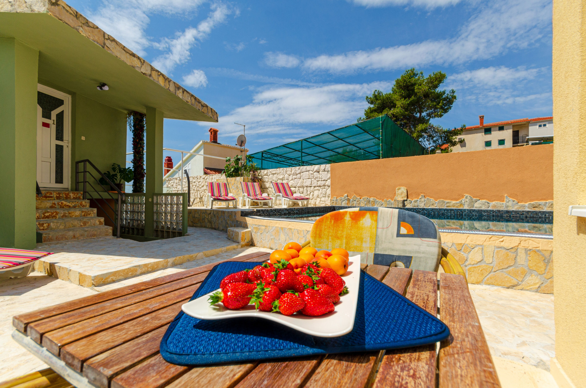 Apartman 2Fő Általános információ A dohányzás megengedett: Igen Az apartman mérete: 35 m2 Kategória: 3 Emelet: földszint Kilátás: tengerre Típus: A2 Berendezés és felszereltség Ágynemű és törölközők: Igen Klíma: helyiség része Fűtés: helyiség része Internet: vezeték nélküli Konyha és nappali Mini hűtőszekrény: Igen Edények és evőeszközök: Igen Főzőlap: Igen Balkon/terasz/kert Kültéri zuhanyzó: Igen Terasz: 10 m2 Fürdőszoba információ Zuhanyzós fürdőszobák száma: 1 Az adott többletszolgáltatás felára a helyszínen fizetendő Fűtés: felár nélkül Klíma: felár nélkül Internet: felár nélkül További információ és szolgáltatás Takarítás: vendégváltáskor Letéti díj a helyszínen fizetendő Megjegyzés: A szálláshely igénybevételének első napján a vendég köteles a szállásadónál 150 € letéti díjjat hagyni, amelyet a szállásfoglalás utolsó napján visszakap, amennyiben a szálláshelyet sértetlen állapotban adja vissza Adatok a szobákról 1 Szoba kapacitás: 2 Kétszemélyes ágyak száma: 1 A szoba alapterülete: 16 m2
