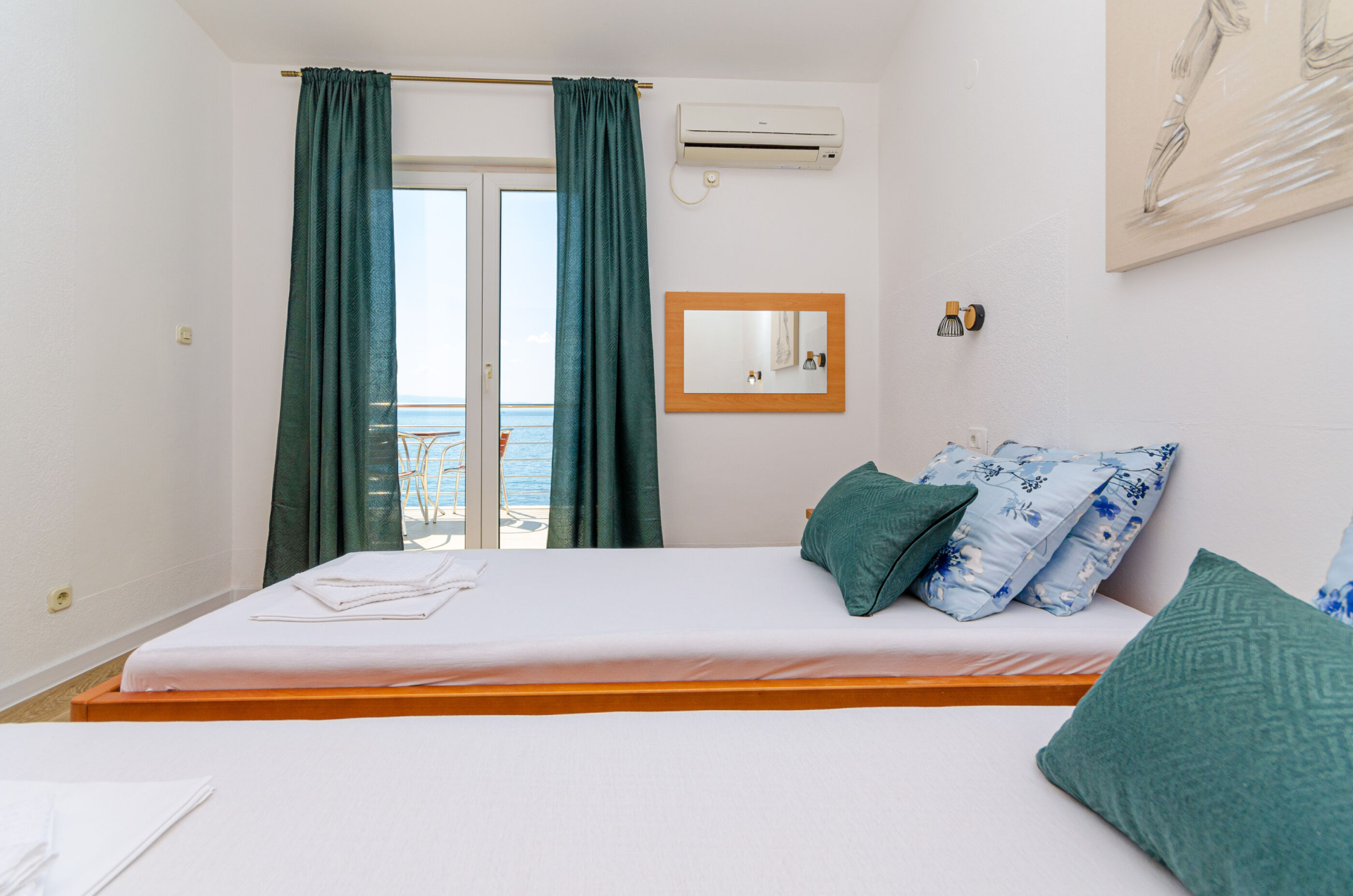 Apartman 3Fő Berendezés és felszereltség Ágynemű és törölközők: Igen Internet: Igen Klíma: helyiség része Fűtés: helyiség része Általános információ Az apartman mérete: 30 m2 Típus: A2+1 Kilátás: tengerre Emelet: második emelet Kategória: 3 Konyha és nappali Főzőlap: Igen Edények és evőeszközök: Igen Mini hűtőszekrény: Igen Pótágyak száma (nappaliban, étkezőben, konyhában): 1 Fürdőszoba információ Zuhanyzós fürdőszobák száma: 1 Balkon/terasz/kert Erkély: 10 m2 További információ és szolgáltatás Takarítás: vendégváltáskor Az adott többletszolgáltatás felára a helyszínen fizetendő Fűtés: felár nélkül Klíma: felár nélkül Internet: felár nélkül Letéti díj a helyszínen fizetendő Megjegyzés: A szálláshely igénybevételének első napján a vendég köteles a szállásadónál 150 € letéti díjjat hagyni, amelyet a szállásfoglalás utolsó napján visszakap, amennyiben a szálláshelyet sértetlen állapotban adja vissza Adatok a szobákról 1 Szoba kapacitás: 2 Kétszemélyes ágyak száma: 1 A szoba alapterülete: 14 m2
