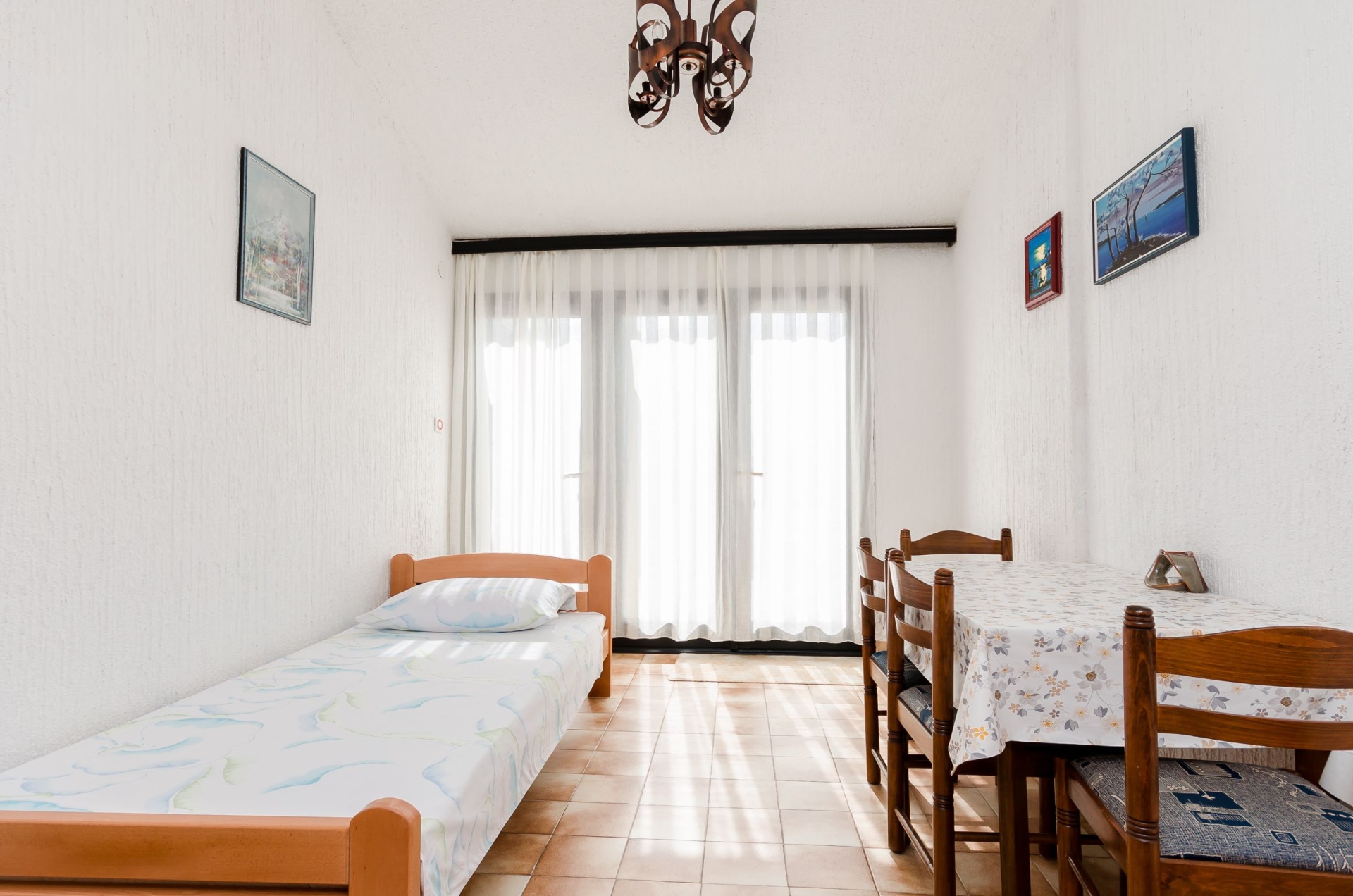 Apartman 4Fő Konyha és nappali Pótágyak száma (nappaliban, étkezőben, konyhában): 2 Sütő: Igen Edények és evőeszközök: Igen Kávéfőző: Igen Fagyasztó: Igen Főzőlap: Igen Hűtőgép: Igen Vízforraló: Igen Berendezés és felszereltség Klíma: helyiség része Fűtés: helyiség része Internet: vezeték nélküli Ágynemű és törölközők: Igen Önkiszolgáló bejelentkezés: Host check-in Az adott többletszolgáltatás felára a helyszínen fizetendő Klíma: felár nélkül Fűtés: felár nélkül Internet: felár nélkül Fürdőszoba információ Hajszárító: kérésre Fürdőkádas fürdőszobák száma: 1 A kert felszerletsége Terasz: 10 m2 Általános információ Felület: 45 m2 Típus: A2+2 Kategória: 3 Kilátás: tengerre és zöldövezetre Emelet: második emelet Adatok a szobákról 1 A szoba alapterülete: 14 m2 Szoba kapacitás: 2 Kétszemélyes ágyak száma: 1