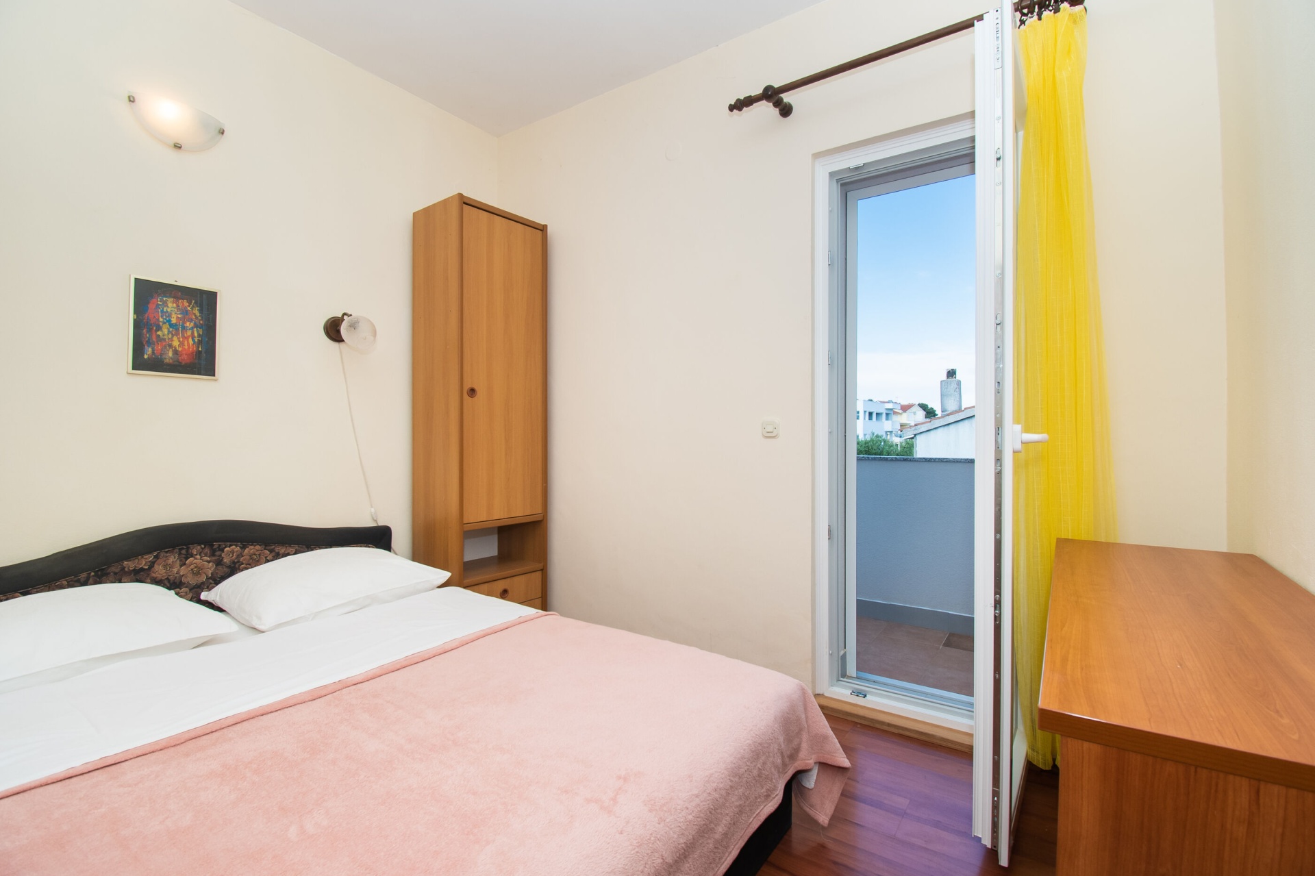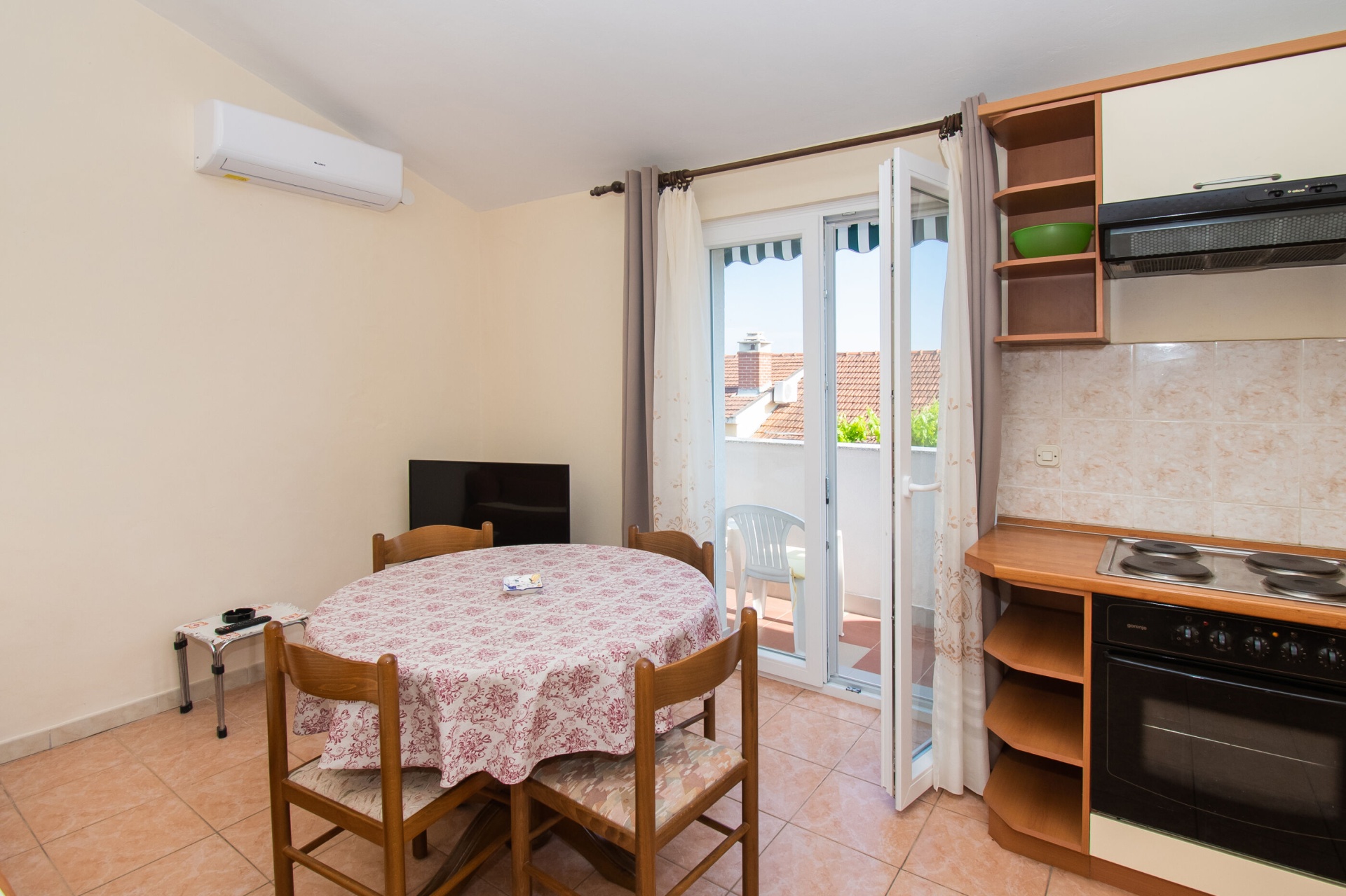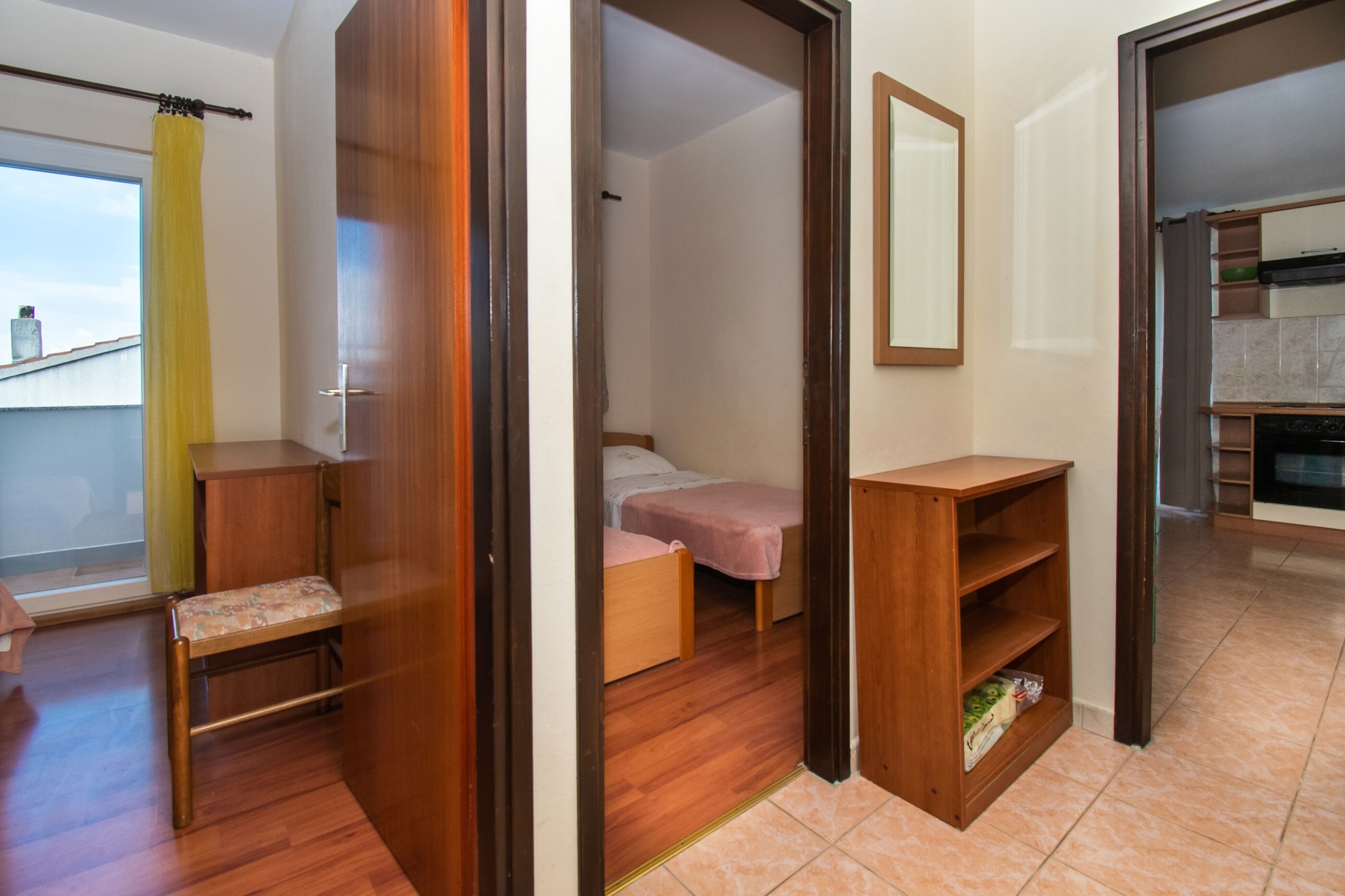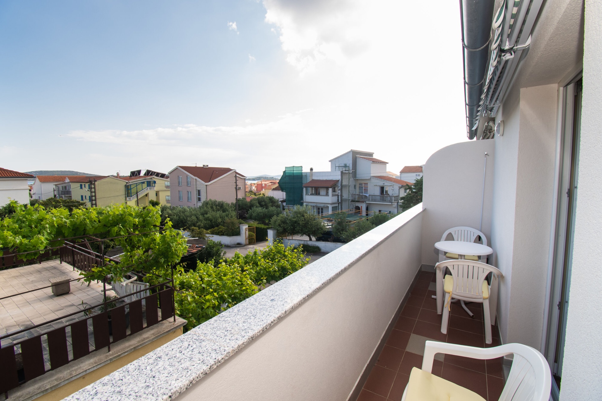 Apartman 4Fő Az adott többletszolgáltatás felára a helyszínen fizetendő Internet: felár nélkül Klíma: felár nélkül Konyha és nappali Hűtőgép: Igen Fagyasztó: Igen Vízforraló: kérésre Főzőlap: Igen Sütő: Igen Edények és evőeszközök: Igen Mosogatógép: Igen A kert felszerletsége Terasz: 4 m2 Erkély: 7 m2 Berendezés és felszereltség Internet: vezeték nélküli Klíma: helyiség része Ágynemű és törölközők: Igen Önkiszolgáló bejelentkezés: Host check-in Fürdőszoba információ Hajszárító: kérésre Zuhanyzós fürdőszobák száma: 1 Általános információ Felület: 45 m2 Típus: A4 A dohányzás megengedett: Igen Kilátás: tengerre és zöldövezetre Emelet: első emelet Kategória: 3 Adatok a szobákról 1 A szoba alapterülete: 9,00 m2 Kétszemélyes ágyak száma: 1 Szoba kapacitás: 2 Adatok a szobákról 2 A szoba alapterülete: 7,00 m2 Egyágyas ágyak száma: 2 Szoba kapacitás: 2
