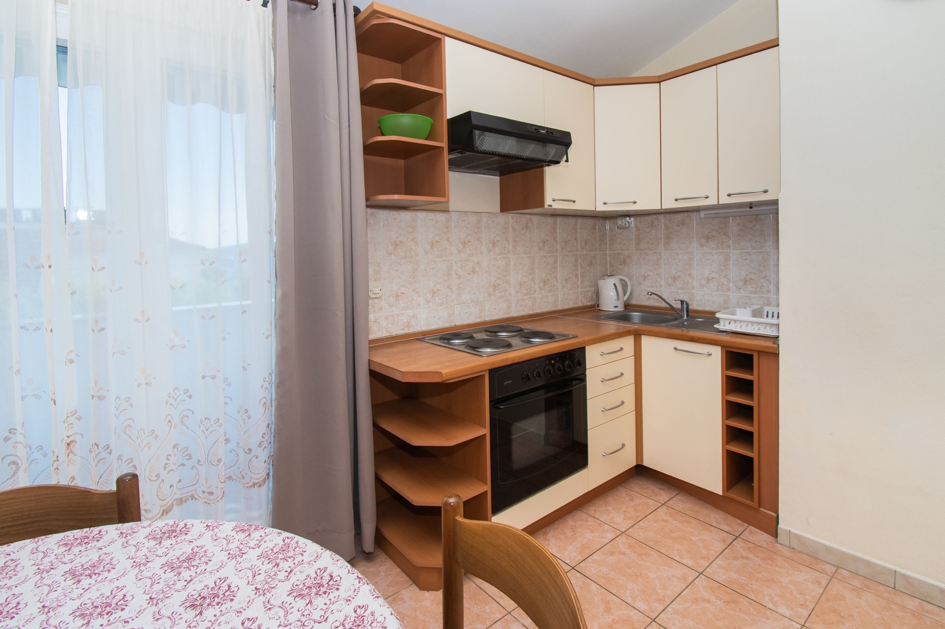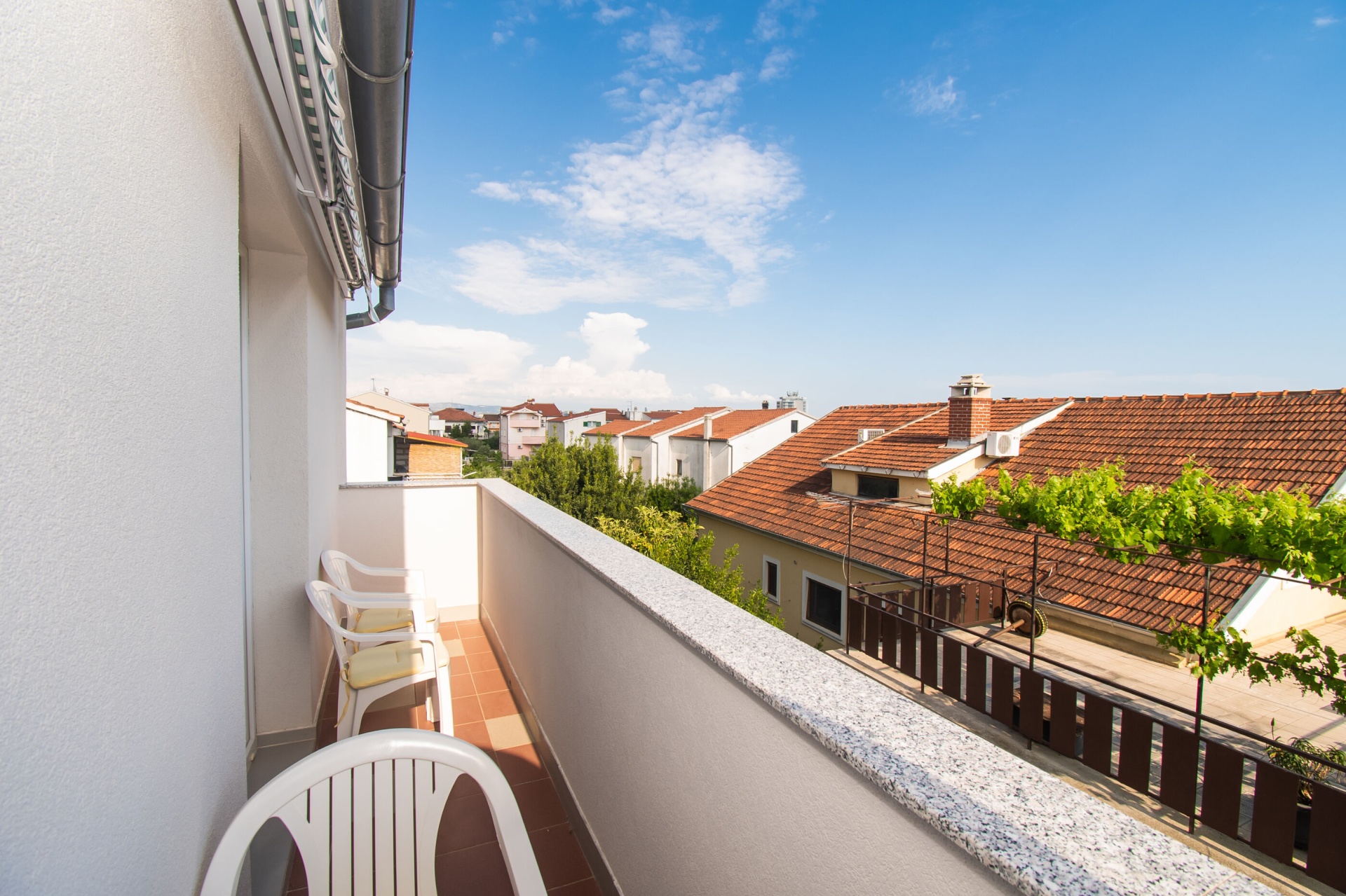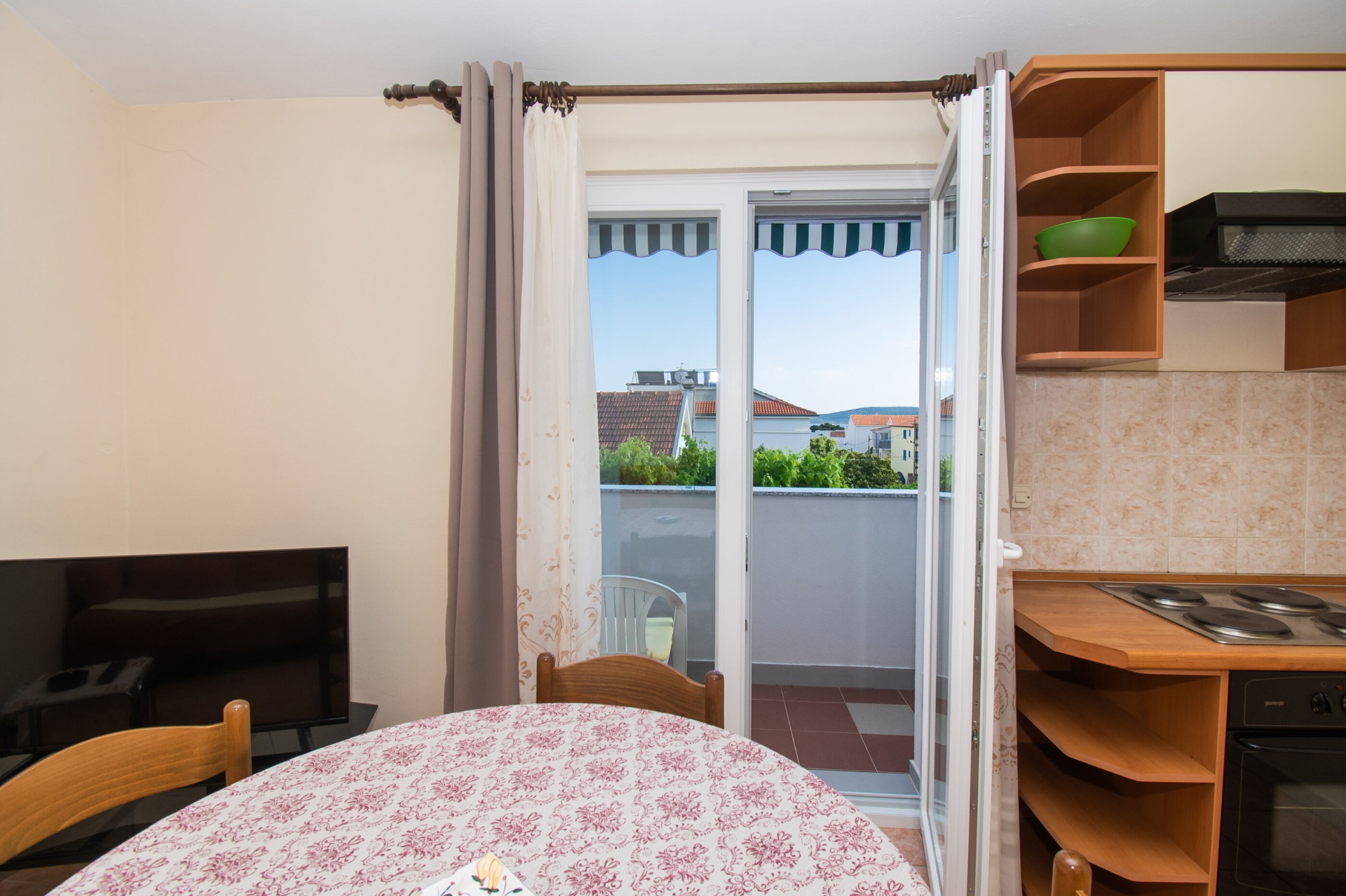 Apartman 4Fő Az adott többletszolgáltatás felára a helyszínen fizetendő Internet: felár nélkül Klíma: felár nélkül Konyha és nappali Hűtőgép: Igen Fagyasztó: Igen Vízforraló: kérésre Főzőlap: Igen Sütő: Igen Edények és evőeszközök: Igen Mosogatógép: Igen A kert felszerletsége Terasz: 4 m2 Erkély: 7 m2 Berendezés és felszereltség Internet: vezeték nélküli Klíma: helyiség része Ágynemű és törölközők: Igen Önkiszolgáló bejelentkezés: Host check-in Fürdőszoba információ Hajszárító: kérésre Zuhanyzós fürdőszobák száma: 1 Általános információ Felület: 45 m2 Típus: A4 A dohányzás megengedett: Igen Kilátás: tengerre és zöldövezetre Emelet: első emelet Kategória: 3 Adatok a szobákról 1 A szoba alapterülete: 9,00 m2 Kétszemélyes ágyak száma: 1 Szoba kapacitás: 2 Adatok a szobákról 2 A szoba alapterülete: 7,00 m2 Egyágyas ágyak száma: 2 Szoba kapacitás: 2