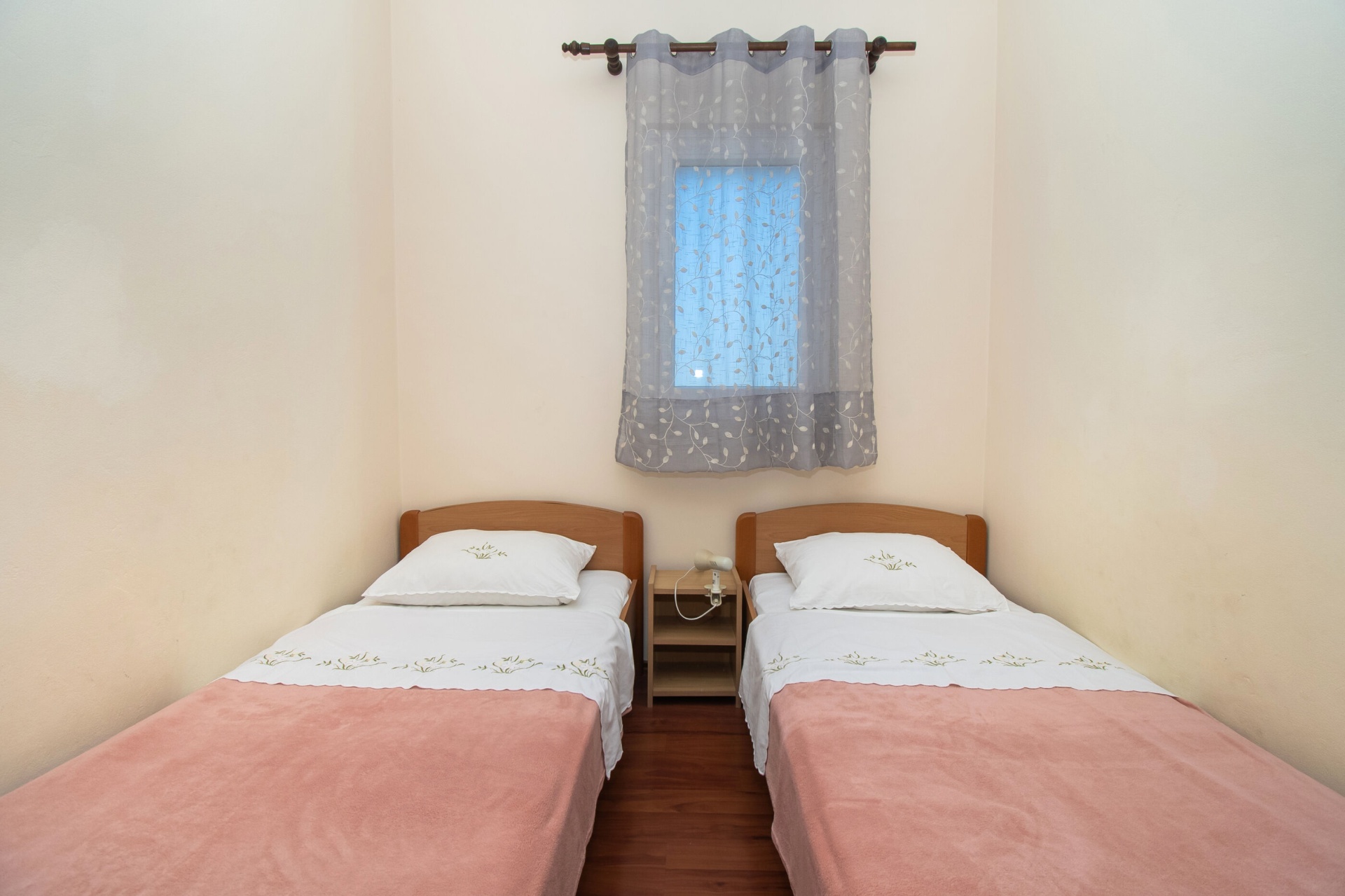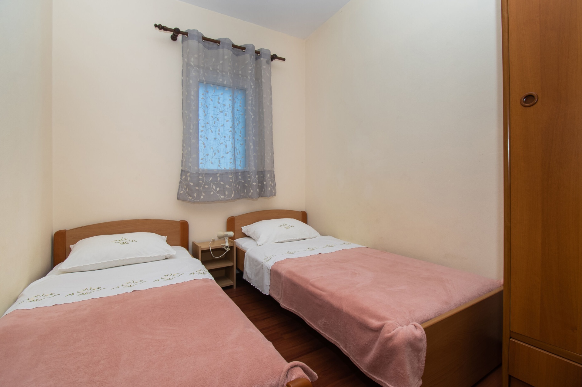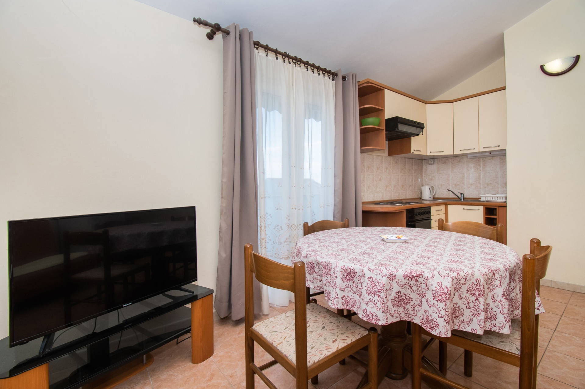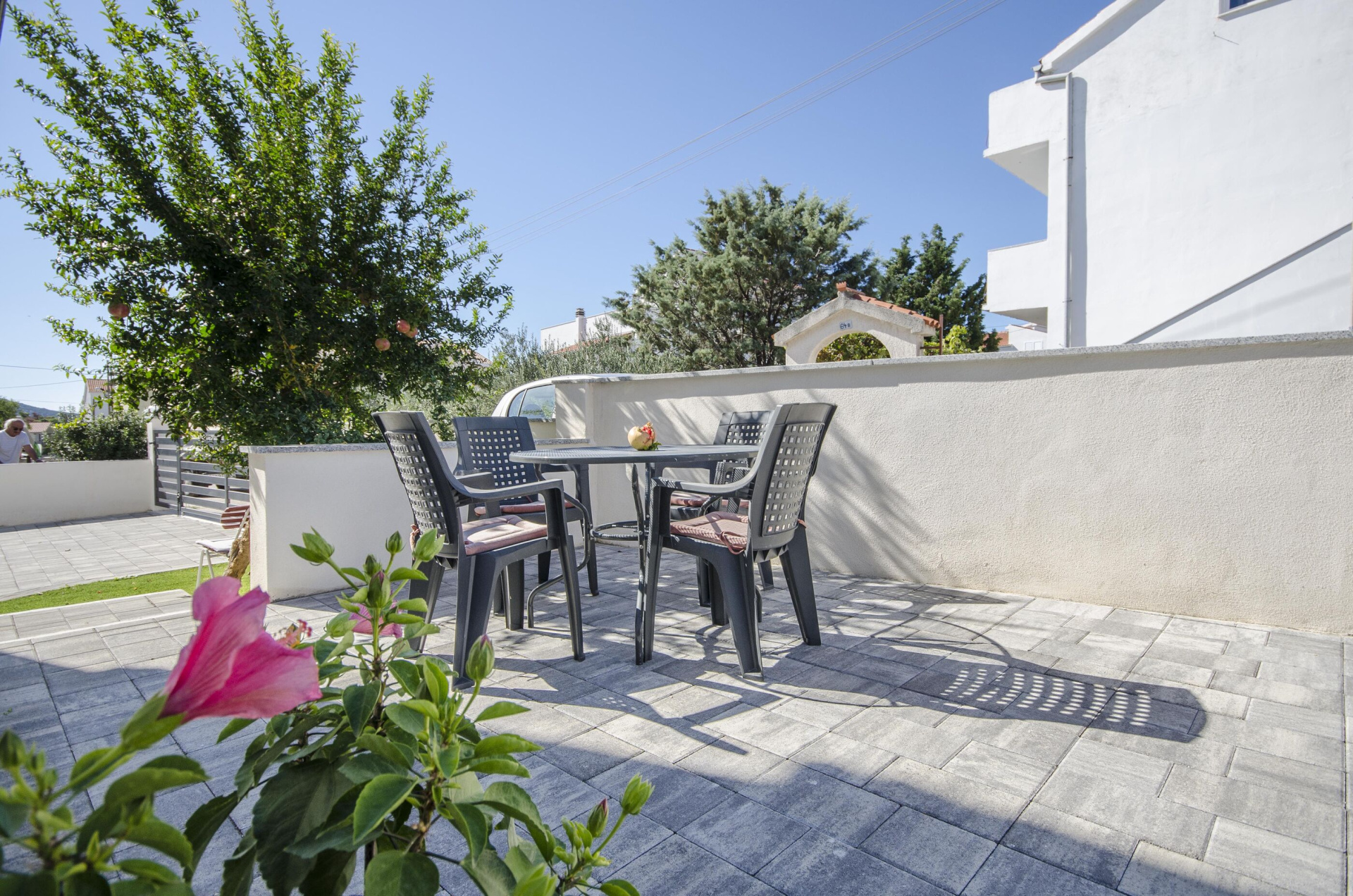 Apartman 4Fő Az adott többletszolgáltatás felára a helyszínen fizetendő Internet: felár nélkül Klíma: felár nélkül Konyha és nappali Hűtőgép: Igen Fagyasztó: Igen Vízforraló: kérésre Főzőlap: Igen Sütő: Igen Edények és evőeszközök: Igen Mosogatógép: Igen A kert felszerletsége Terasz: 4 m2 Erkély: 7 m2 Berendezés és felszereltség Internet: vezeték nélküli Klíma: helyiség része Ágynemű és törölközők: Igen Önkiszolgáló bejelentkezés: Host check-in Fürdőszoba információ Hajszárító: kérésre Zuhanyzós fürdőszobák száma: 1 Általános információ Felület: 45 m2 Típus: A4 A dohányzás megengedett: Igen Kilátás: tengerre és zöldövezetre Emelet: első emelet Kategória: 3 Adatok a szobákról 1 A szoba alapterülete: 9,00 m2 Kétszemélyes ágyak száma: 1 Szoba kapacitás: 2 Adatok a szobákról 2 A szoba alapterülete: 7,00 m2 Egyágyas ágyak száma: 2 Szoba kapacitás: 2