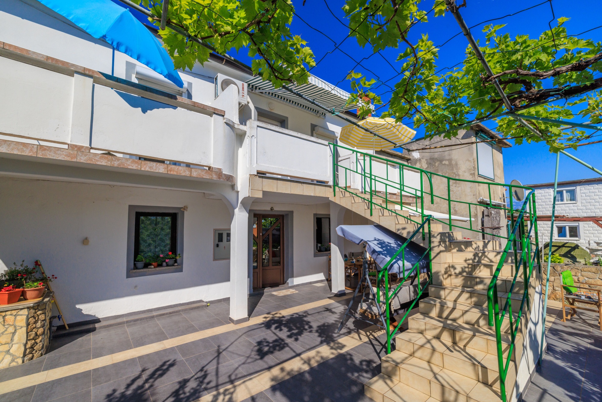 Apartman 4Fő Általános információ Kategória: 2 Típus: A4 Emelet: első emelet Kilátás: zöldövezetre és udvarra Felület: 70 m2 Háziállatok: Háziállat barát szálláshely- az irodával történt előzetes egyeztetés alapján (felár a helyszínen a szállásadónak fizetendő) Berendezés és felszereltség Internet: vezeték nélküli Ágynemű és törölközők: Igen Klíma: helyiség része Fűtés: helyiség része Önkiszolgáló bejelentkezés: Host check-in Fürdőszoba információ Toalett száma mosdóval: 1 Hajszárító: kérésre Fürdőkádas fürdőszobák száma: 1 Konyha és nappali Mikrohullámú sütő: Igen Vízforraló: Igen Fagyasztó: Igen Kávéfőző: Igen Hűtőgép: Igen Edények és evőeszközök: Igen A kert felszerletsége Erkély: 16 m2 Megosztott terasz, amely minden vendég és szolgáltató számára elérhető: 30 m2 Az adott többletszolgáltatás felára a helyszínen fizetendő Internet: felár nélkül Klíma: felár nélkül Fűtés: felár nélkül Háziállat: 10 €/nap Adatok a szobákról 1 Kétszemélyes ágyak száma: 1 Terasz/Erkély: Igen A szoba alapterülete: 13 m2 Szoba kapacitás: 2 Adatok a szobákról 2 Szoba kapacitás: 2 A szoba alapterülete: 11 m2 Kétszemélyes ágyak száma: 1