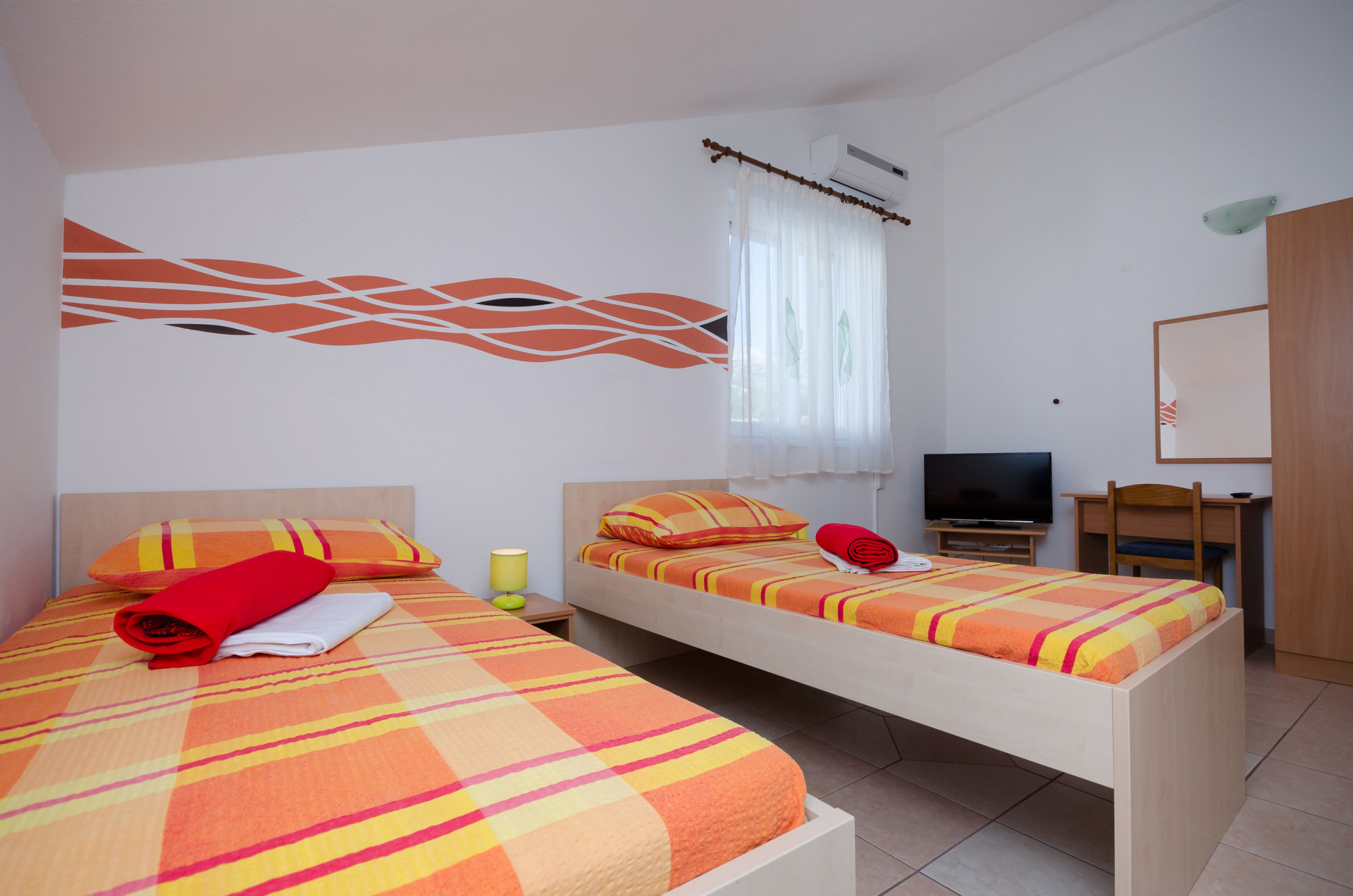 Apartman 6Fő Általános információ Kategória: 3 Típus: A4+2 Emelet: első emelet Kilátás: tengerre és zöldövezetre Az apartman mérete: 75 m2 Berendezés és felszereltség Vasaló: kérésre Gyerekágy: irodával történt előzetes megbeszélés szerint Mosógép: irodával történt előzetes megbeszélés szerint Internet: Igen Klíma: az összes szoba Fűtés: az összes szoba Ágynemű és törölközők: Igen Konyha és nappali Főzőlap: Igen Sütő: Igen Pótágyak száma (nappaliban, étkezőben, konyhában): 2 Edények és evőeszközök: Igen Mosogatógép: Igen Fagyasztó: Igen Kávéfőző: Igen Hűtőgép: Igen Mikrohullámú sütő: kérésre Vízforraló: Igen Az adott többletszolgáltatás felára a helyszínen fizetendő Klíma: felár nélkül Fűtés: felár nélkül Internet: felár nélkül Fürdőszoba információ Zuhanyzós fürdőszobák száma: 1 Hajszárító: kérésre Balkon/terasz/kert A többi vendéggel vagy a szállásadóval közösen használandó helyiség: 100 m2 Erkély: 6 m2 A többi vendéggel vagy a szállásadóval közösen használandó helyiség: 60 m2 További információ és szolgáltatás Takarítás: vendégváltáskor Adatok a szobákról 1 A szoba alapterülete: 16 m2 Kétszemélyes ágyak száma: 1 Terasz/Erkély: Igen Szoba kapacitás: 2 Adatok a szobákról 2 Szoba kapacitás: 2 A szoba alapterülete: 14 m2 Egyágyas ágyak száma: 2