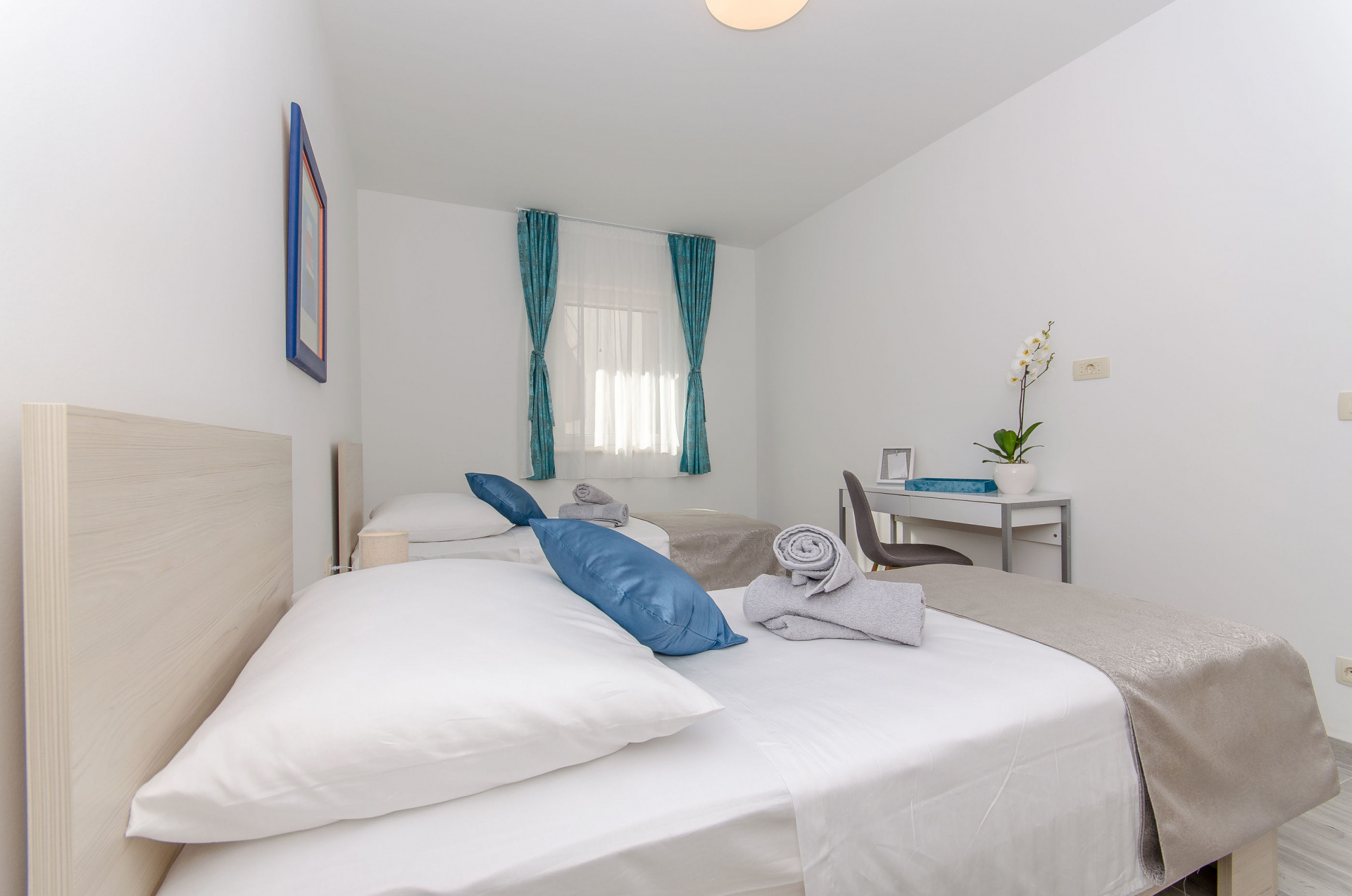 A Horvátországban található Le Vie apartmanok a tengertől 150 m, a Sumpetar (Omiš) település központjától pedig 150 m található. Kilátás: tengerre. A strand típusa: apró kavicsos. A 6 személyes, apartmanban 3 szoba található. A szállás berendezése: klíma, televízió, internet, gyerekágy, vasaló, mosógép. Hogy a nyári hőség jobban elviselhetőbb legyen, a szálláson van kíma.