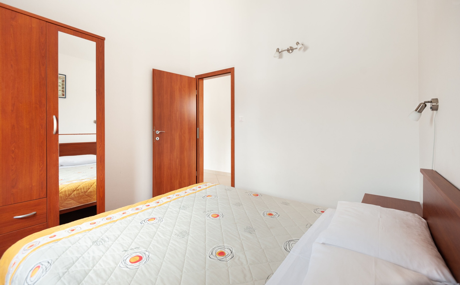 Apartman 6Fő Általános információ Kategória: 3 A dohányzás megengedett: Igen Akadálymentes szálláshely: Igen Emelet: első emelet Típus: A4+2 Felület: 55 m2 Kilátás: tengerre Berendezés és felszereltség Fűtés: helyiség része Klíma: helyiség része Internet: vezeték nélküli Mosógép: Igen Ágynemű és törölközők: Igen Önkiszolgáló bejelentkezés: Host check-in Az adott többletszolgáltatás felára a helyszínen fizetendő Klíma: felár nélkül Fűtés: felár nélkül Internet: felár nélkül További információ és szolgáltatás Takarítás: vendégváltáskor Konyha és nappali Pótágyak száma (nappaliban, étkezőben, konyhában): 2 Edények és evőeszközök: Igen Főzőlap: Igen Hűtőgép: Igen Fagyasztó: Igen Mikrohullámú sütő: Igen Kávéfőző: Igen Vízforraló: Igen Mosogatógép: Igen A kert felszerletsége Erkély: 9 m2 Fürdőszoba információ Zuhanyzós fürdőszobák száma: 1 Hajszárító: Igen Adatok a szobákról 1 Szoba kapacitás: 2 Kétszemélyes ágyak száma: 1 A szoba alapterülete: 10,00 m2 Adatok a szobákról 2 A szoba alapterülete: 8,00 m2 Szoba kapacitás: 2 Egyágyas ágyak száma: 2