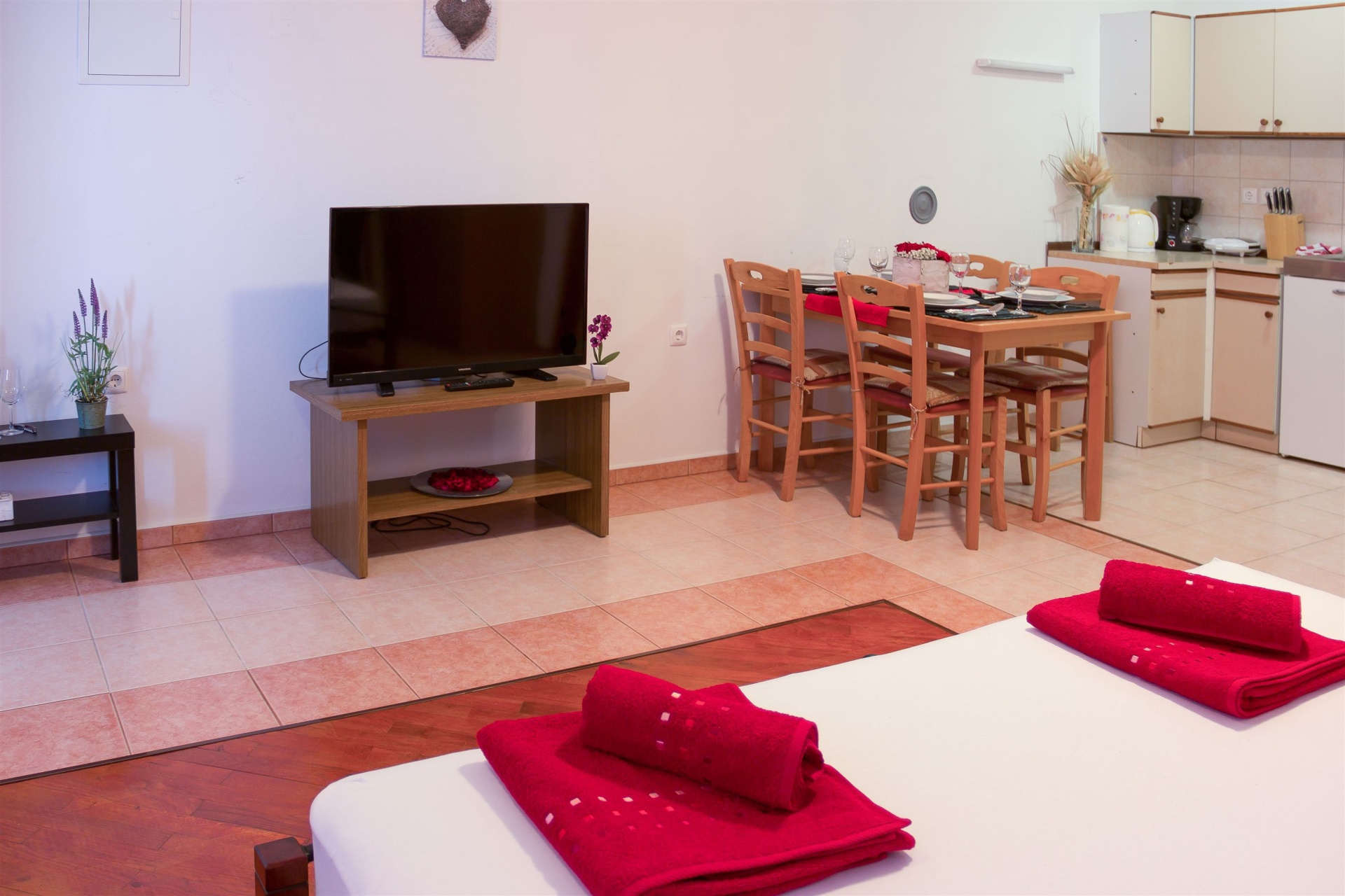 Apartman 2Fő Fürdőszoba információ Fürdőkádas fürdőszobák száma: 1 Hajszárító: kérésre Berendezés és felszereltség Radiókészülék: Igen Ágynemű és törölközők: Igen Internet: vezeték nélküli Klíma: helyiség része Fűtés: helyiség része Önkiszolgáló bejelentkezés: Host check-in További információ és szolgáltatás Takarítás: vendégváltáskor A kert felszerletsége Megosztott terasz, amely minden vendég és szolgáltató számára elérhető: 50 m2 Általános információ Típus: STUDIO Háziállatok: Háziállat barát szálláshely- az irodával történt előzetes egyeztetés alapján (felár a helyszínen a szállásadónak fizetendő) Felület: 30 m2 Kategória: 3 Emelet: földszint Kilátás: tengerre Konyha és nappali Hűtőgép: Igen Főzőlap: Igen Edények és evőeszközök: Igen Kávéfőző: Igen Stúdió apartman Ágyak száma: 2 Kétszemélyes ágy: 1 Az adott többletszolgáltatás felára a helyszínen fizetendő Internet: felár nélkül Klíma: felár nélkül Fűtés: felár nélkül Háziállat: 7 €/nap