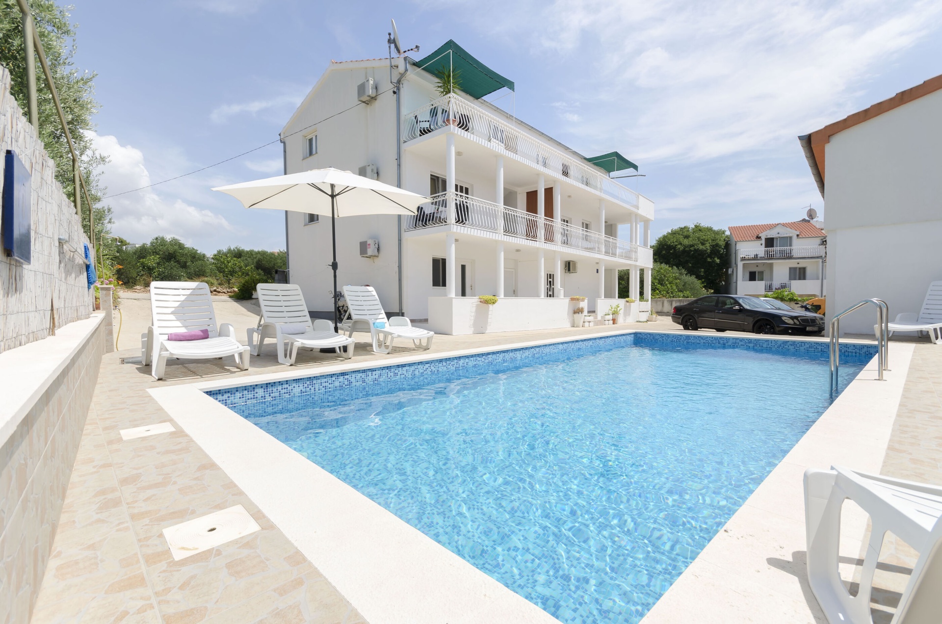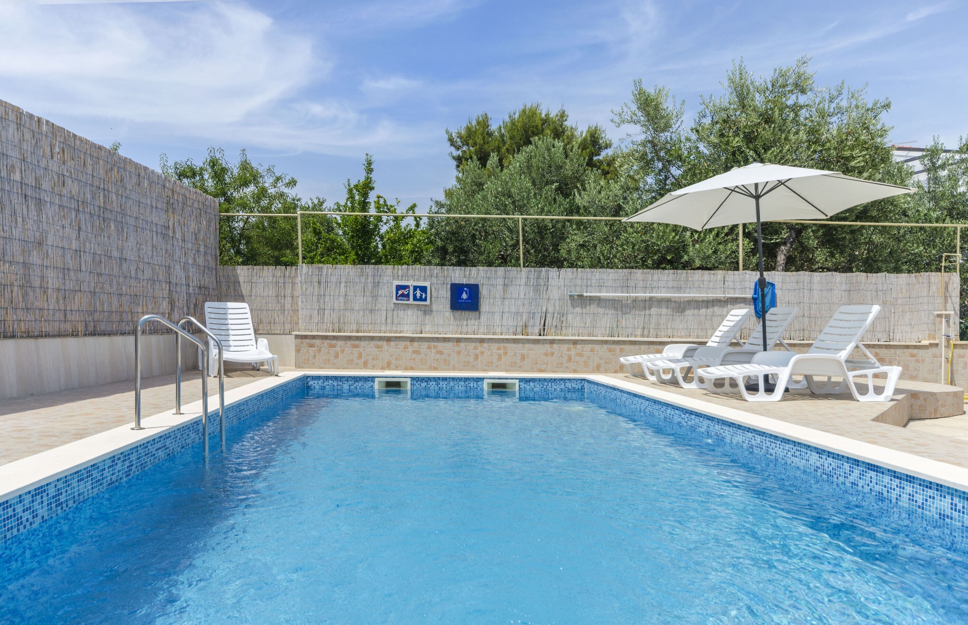 Apartman 4Fő A kert felszerletsége Terasz: 12 m2 Kültéri zuhanyzó: Igen Az adott többletszolgáltatás felára a helyszínen fizetendő Internet: felár nélkül Klíma: felár nélkül Fűtés: felár nélkül Háziállat: 7 €/nap Általános információ Típus: A2+2 Felület: 44 m2 Háziállatok: Háziállat barát szálláshely- az irodával történt előzetes egyeztetés alapján (felár a helyszínen a szállásadónak fizetendő) Emelet: földszint Kategória: 3 Kilátás: zöldövezetre és csendes utcára Berendezés és felszereltség Internet: vezeték nélküli Gyerekágy: kérésre Ágynemű és törölközők: Igen Fűtés: helyiség része Klíma: helyiség része Önkiszolgáló bejelentkezés: Host check-in Fürdőszoba információ Fürdőkádas fürdőszobák száma: 1 Hajszárító: kérésre Konyha és nappali Kétszemélyes ágyak száma: 1 Vízforraló: Igen Sütő: Igen Főzőlap: Igen Edények és evőeszközök: Igen Fagyasztó: Igen Hűtőgép: Igen További információ és szolgáltatás Takarítás: vendégváltáskor Letéti díj a helyszínen fizetendő Megjegyzés: A szálláshely igénybevételének első napján a vendég köteles a szállásadónál 100 € letéti díjat fizetni, amelyet a szállásfoglalás utolsó napján visszakap, amennyiben a szálláshelyet sértetlen állapotban adja vissza. Adatok a szobákról 1 Szoba kapacitás: 2 Kétszemélyes ágyak száma: 1
