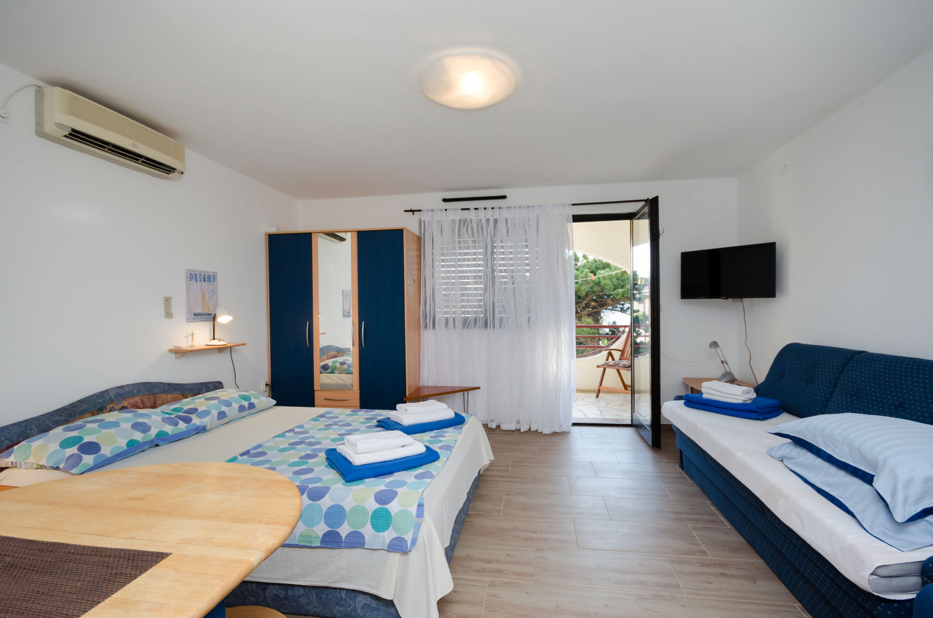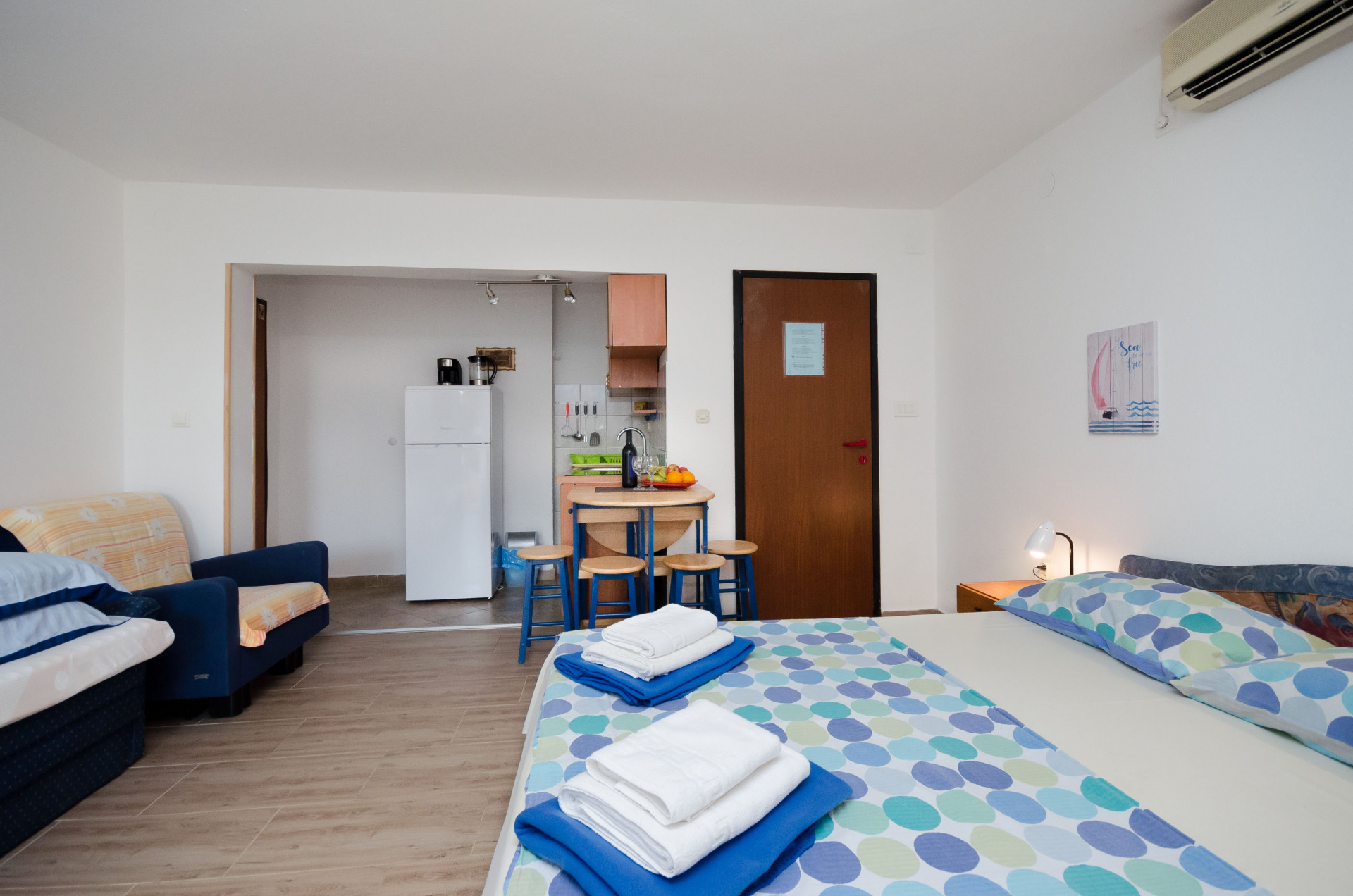 Apartman 2Fő Berendezés és felszereltség Radiókészülék: Igen Fűtés: helyiség része Széf: Igen Gyerekágy: irodával történt előzetes megbeszélés szerint Klíma: helyiség része Vasaló: kérésre Internet: Igen Ágynemű és törölközők: Igen Általános információ Emelet: magasföldszint Típus: STUDIO Kategória: 3 Kilátás: tengerre Az apartman mérete: 17 m2 Stúdió apartman Ágyak száma: 2 Kétszemélyes ágy: 1 Fürdőszoba információ Zuhanyzós fürdőszobák száma: 1 Hajszárító: kérésre További információ és szolgáltatás Takarítás: vendégváltáskor Az adott többletszolgáltatás felára a helyszínen fizetendő Fűtés: felár nélkül Klíma: felár nélkül Internet: felár nélkül Balkon/terasz/kert A többi vendéggel vagy a szállásadóval közösen használandó helyiség: 100 m2 Terasz: 5 m2 Konyha és nappali Edények és evőeszközök: Igen Kávéfőző: Igen Hűtőgép: Igen Főzőlap: Igen