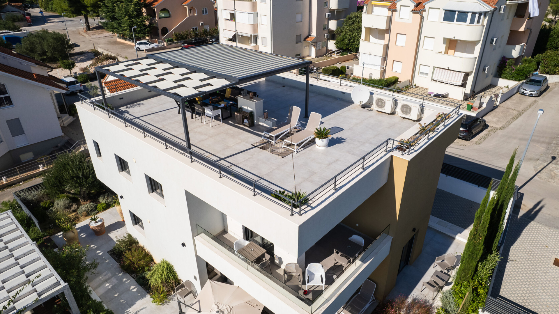 A Horvátországban található Adriana I medencés apartmanok a tengertől 100, a strandtól 200, Srima (Vodice) település központjától pedig 300 méterre található. A strand típusa: homokos és apró kavicsos. A szálláson 2x6 személyes apartmanok vannak. A szállás berendezése: klíma, televízió, internet, széf, vasaló, mosógép. Hogy a nyári hőség jobban elviselhetőbb legyen, a szálláson van klíma. Háziállat barát szálláshely- az irodával történt előzetes egyeztetés alapján.( felár nélkül).