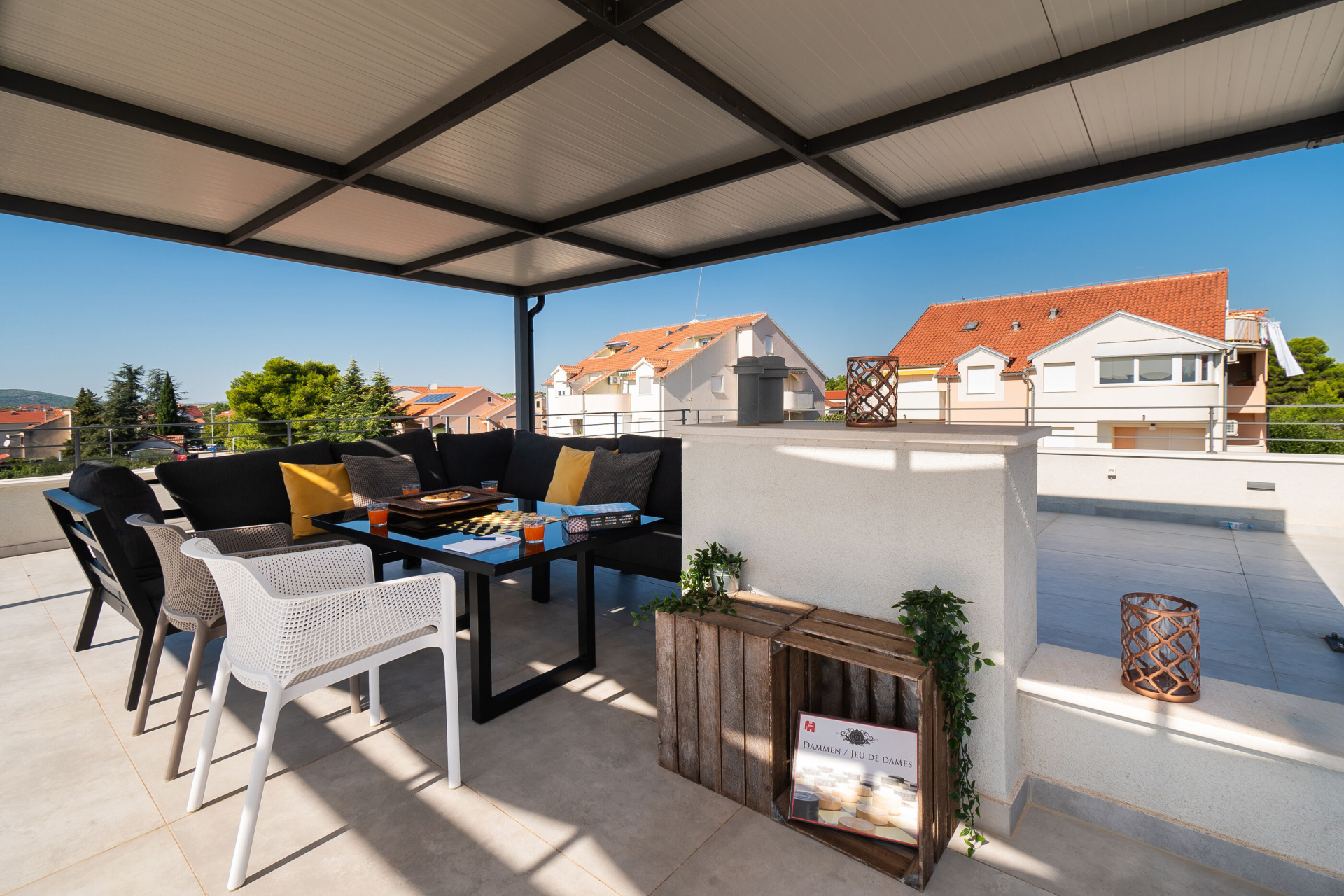 Apartman 6Fő Általános információ Kategória: 4 Emelet: földszint Típus: A4+2 Háziállatok: Háziállat barát szálláshely- az irodával történt előzetes egyeztetés alapján (felár a helyszínen a szállásadónak fizetendő) Felület: 80 m2 Berendezés és felszereltség Klíma: helyiség része Internet: vezeték nélküli Széf: Igen Vasaló: Igen Ágynemű és törölközők: Igen Önkiszolgáló bejelentkezés: Host check-in Az adott többletszolgáltatás felára a helyszínen fizetendő Háziállat: 10 €/nap Klíma: felár nélkül Internet: felár nélkül Letéti díj a helyszínen fizetendő Megjegyzés: A szálláshely igénybevételének első napján a vendég köteles a szállásadónál 200 € letéti díjjat hagyni, amelyet a szállásfoglalás utolsó napján visszakap, amennyiben a szálláshelyet sértetlen állapotban adja vissza Konyha és nappali Pótágyak száma (nappaliban, étkezőben, konyhában): 2 Edények és evőeszközök: Igen Sütő: Igen Főzőlap: Igen Hűtőgép: Igen Fagyasztó: Igen Mikrohullámú sütő: Igen Kávéfőző: Igen Vízforraló: Igen Mosogatógép: Igen A kert felszerletsége Terasz: 40 m2 Fürdőszoba információ Zuhanyzós fürdőszobák száma: 2 Toalett száma mosdóval: 1 Hajszárító: Igen Adatok a szobákról 1 Szoba kapacitás: 2 Kétszemélyes ágyak száma: 1 Adatok a szobákról 2 Kétszemélyes ágyak száma: 1 Szoba kapacitás: 2