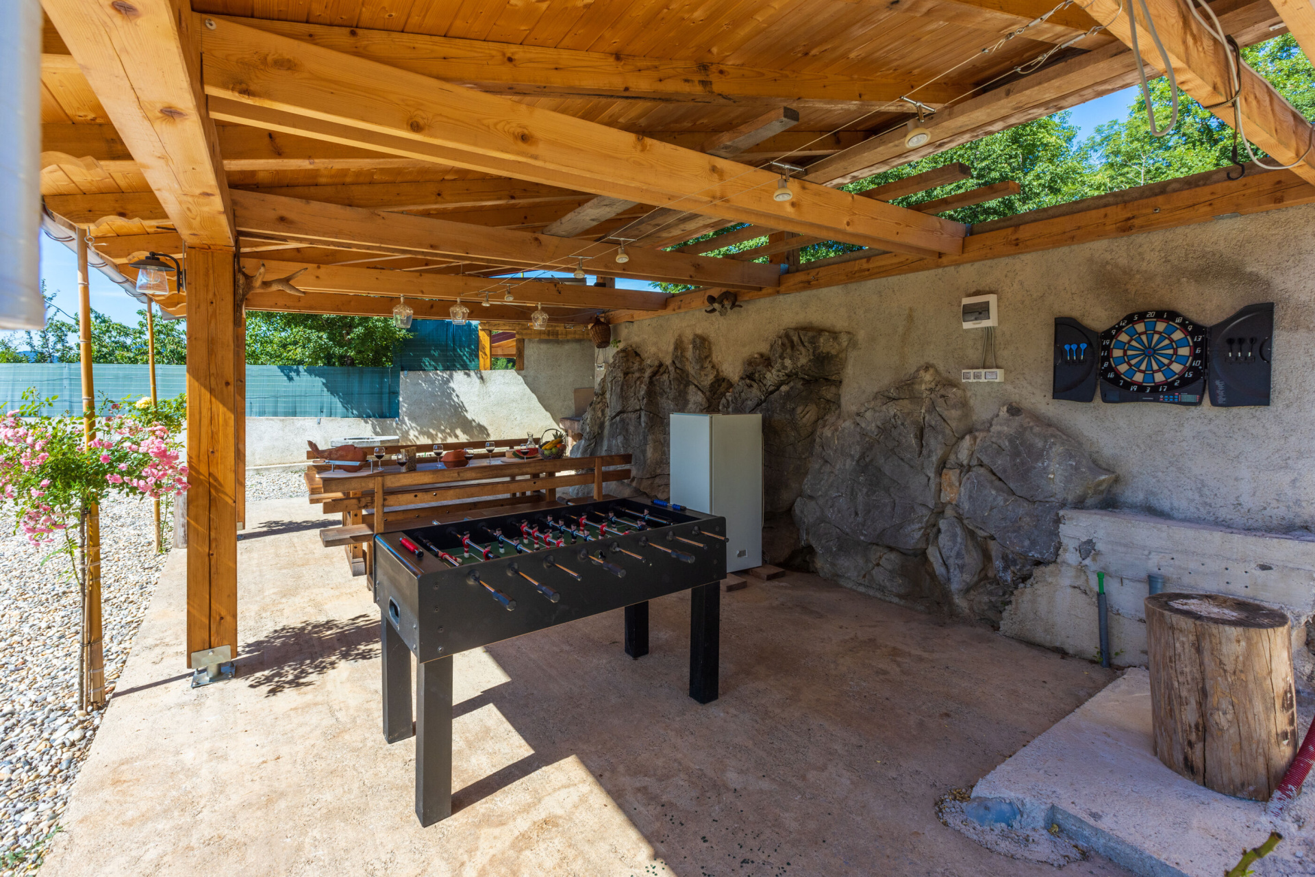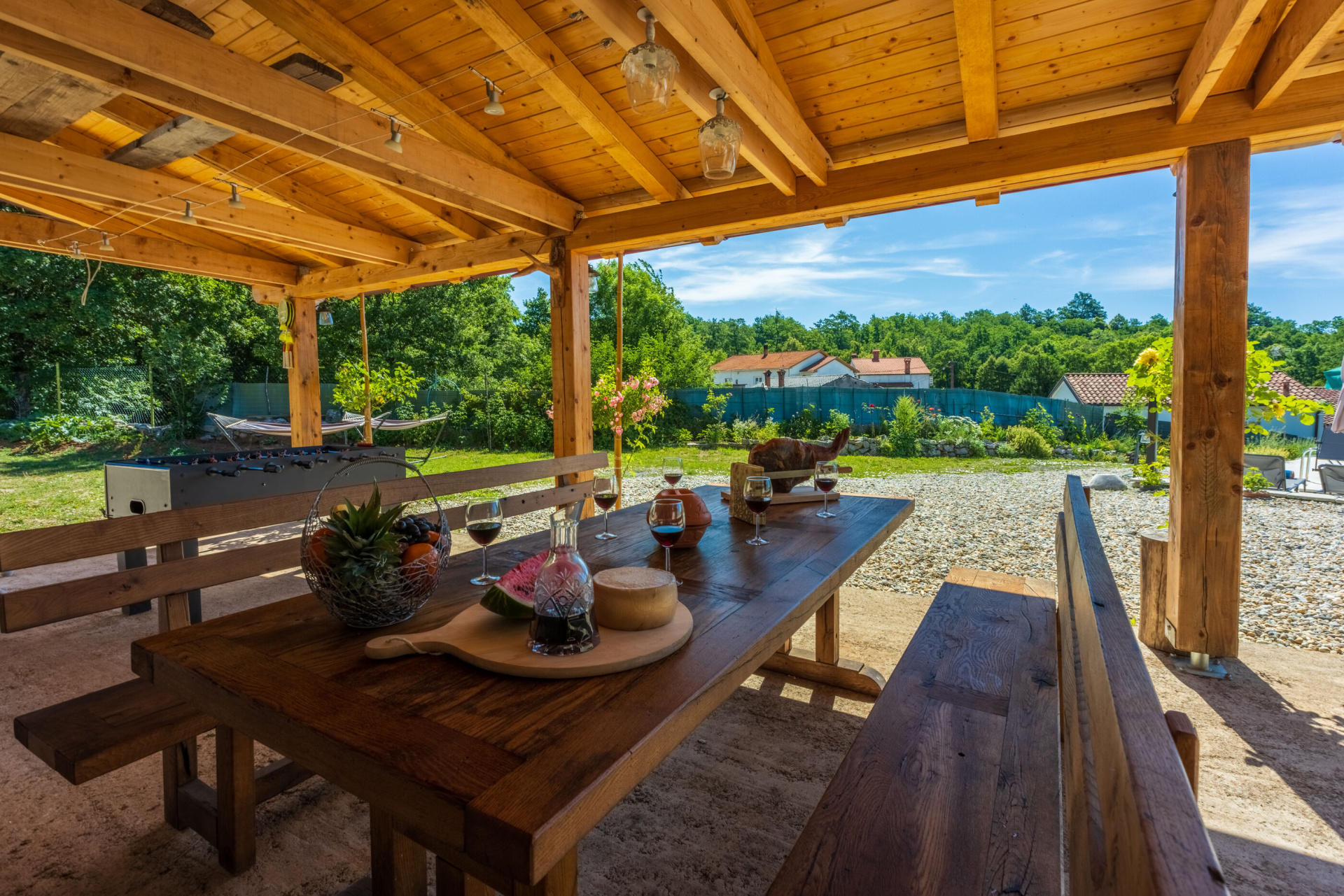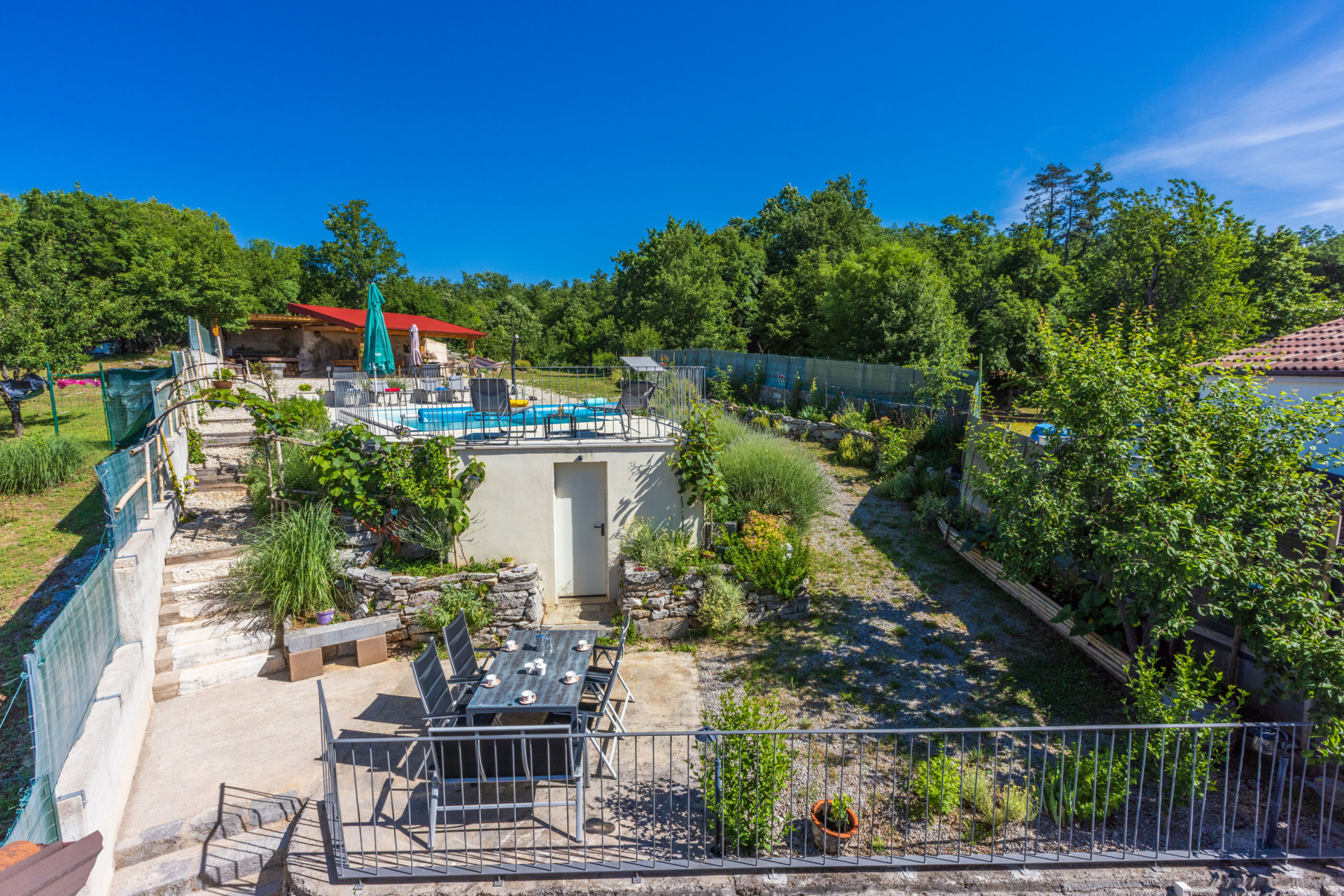 Egyéb 6Fő Általános információ Kategória: 5 Emelet: földszint Típus: A6 Felület: 170 m2 Kilátás: zelenu površinu i planinu Berendezés és felszereltség Fűtés: helyiség része Klíma: helyiség része Radiókészülék: Igen Internet: vezeték nélküli Széf: Igen Vasaló: Igen Mosógép: Igen Ágynemű és törölközők: Igen Önkiszolgáló bejelentkezés: Host check-in Az adott többletszolgáltatás felára a helyszínen fizetendő Klíma: felár nélkül Fűtés: felár nélkül Internet: felár nélkül Letéti díj a helyszínen fizetendő Megjegyzés: A szálláshely igénybevételének első napján a vendég köteles a szállásadónál 200 € letéti díjjat hagyni, amelyet a szállásfoglalás utolsó napján visszakap, amennyiben a szálláshelyet sértetlen állapotban adja vissza További információ és szolgáltatás Takarítás: vendégváltáskor A kert felszerletsége A ház körüli kert alapterülete/vrta: 2000 m2 Kerítéssel vagy élósövénnyel elkerített kert: Igen Kültéri zuhanyzó: Igen Kerti ülőgarnitúra: Igen Konyha és nappali Edények és evőeszközök: Igen Sütő: Igen Főzőlap: Igen Hűtőgép: Igen Fagyasztó: Igen Mikrohullámú sütő: Igen Kávéfőző: Igen Vízforraló: Igen Toszter: Igen Mosogatógép: Igen Stúdió apartman Ágyak száma: 6 Fürdőszoba információ Fürdőkádas fürdőszobák száma: 1 Zuhanyzós fürdőszobák száma: 2 Hajszárító: Igen Adatok a szobákról 1 A szoba alapterülete: 18 m2 Szoba kapacitás: 2 Franciaágyak száma: 1 Adatok a szobákról 2 A szoba alapterülete: 18 m2 Kétszemélyes ágyak száma: 1 Szoba kapacitás: 2 Adatok a szobákról 3 A szoba alapterülete: 15 m2 Kétszemélyes ágyak száma: 1 Szoba kapacitás: 2