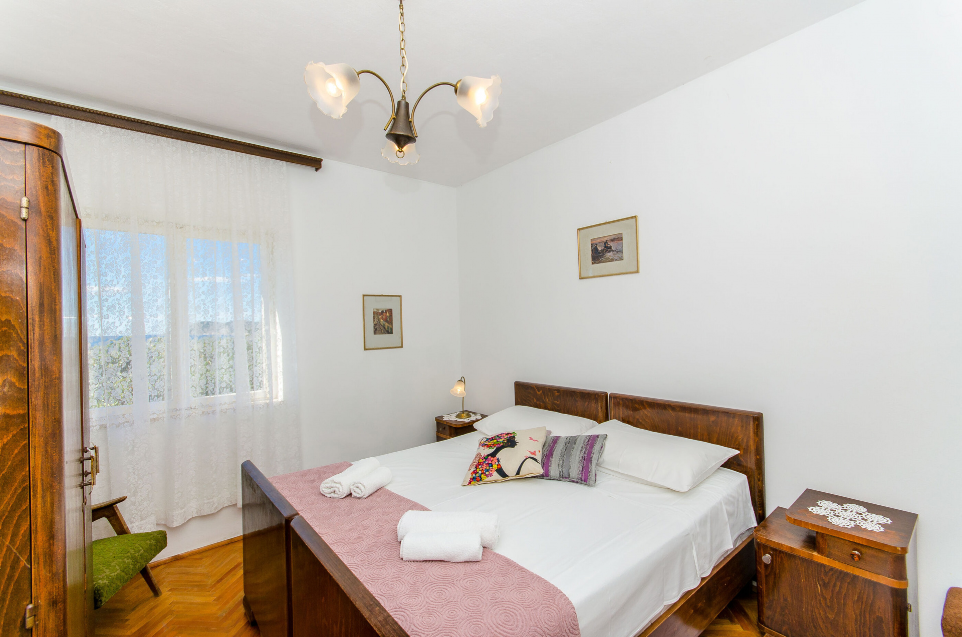 Egyéb 8Fő Konyha és nappali Kávéfőző: Igen Edények és evőeszközök: Igen Mikrohullámú sütő: Igen Fagyasztó: Igen Hűtőgép: Igen Vízforraló: Igen Sütő: Igen Főzőlap: Igen Pótágy a nappaliban: 2 Toszter: Igen Fürdőszoba információ Fürdőkádas fürdőszobák száma: 1 Hajszárító: Igen Zuhanyzós fürdőszobák száma: 1 Berendezés és felszereltség Gyerekágy: kérésre Radiókészülék: Igen Vasaló: Igen Klíma: helyiség része Mosógép: Igen Fűtés: az összes szoba Ágynemű és törölközők: Igen Internet: vezeték nélküli Általános információ A ház alapterülete: 110 m2 A dohányzás megengedett: Igen Kilátás: tengerre és zöldövezetre Kategória: 3 A kert felszerletsége Kerítéssel vagy élósövénnyel elkerített kert: Igen A ház körüli kert alapterülete/vrta: 400 m2 Az adott többletszolgáltatás felára a helyszínen fizetendő Klíma: felár nélkül Fűtés: felár nélkül Internet: felár nélkül Ágyak száma A szobákban található ágyak száma összesen: 6 További információ és szolgáltatás Takarítás: vendégváltáskor Adatok a szobákról 1 Kétszemélyes ágyak száma: 1,00 Szoba kapacitás: 2,00 A szoba alapterülete: 20,00 m2 Adatok a szobákról 2 Kétszemélyes ágyak száma: 1,00 Szoba kapacitás: 2,00 A szoba alapterülete: 20,00 m2 Adatok a szobákról 3 A szoba alapterülete: 15,00 m2 Egyágyas ágyak száma: 2,00 Szoba kapacitás: 2,00
