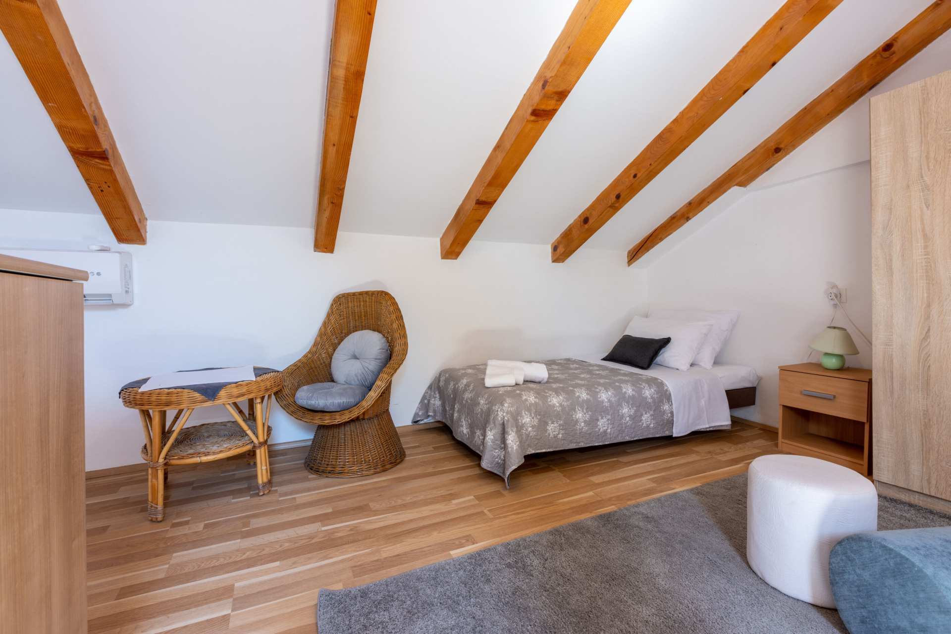 Egyéb 6Fő Általános információ Kategória: 3 A dohányzás megengedett: Igen Felület: 126 m2 Kilátás: tengerre és udvarra Berendezés és felszereltség Fűtés: helyiség része Klíma: helyiség része Internet: vezeték nélküli Vasaló: Igen Ágynemű és törölközők: Igen Önkiszolgáló bejelentkezés: Host check-in Az adott többletszolgáltatás felára a helyszínen fizetendő Klíma: felár nélkül Fűtés: felár nélkül Internet: felár nélkül Letéti díj a helyszínen fizetendő Megjegyzés: A szálláshely igénybevételének első napján a vendég köteles a szállásadónál 100 € letéti díjat fizetni, amelyet a szállásfoglalás utolsó napján visszakap, amennyiben a szálláshelyet sértetlen állapotban adja vissza. További információ és szolgáltatás Takarítás: vendégváltáskor Konyha és nappali Pótágyak száma (nappaliban, étkezőben, konyhában): 2 Edények és evőeszközök: Igen Sütő: Igen Főzőlap: Igen Hűtőgép: Igen Fagyasztó: Igen Mikrohullámú sütő: Igen Kávéfőző: Igen Vízforraló: Igen Toszter: Igen Mosogatógép: Igen Stúdió apartman Ágyak száma: 4 Fürdőszoba információ Zuhanyzós fürdőszobák száma: 2 Hajszárító: Igen Adatok a szobákról 1 Kétszemélyes ágyak száma: 1 A szoba alapterülete: 12 m2 Szoba kapacitás: 2 Adatok a szobákról 2 Szoba kapacitás: 2 Egyágyas ágyak száma: 2 A szoba alapterülete: 15 m2