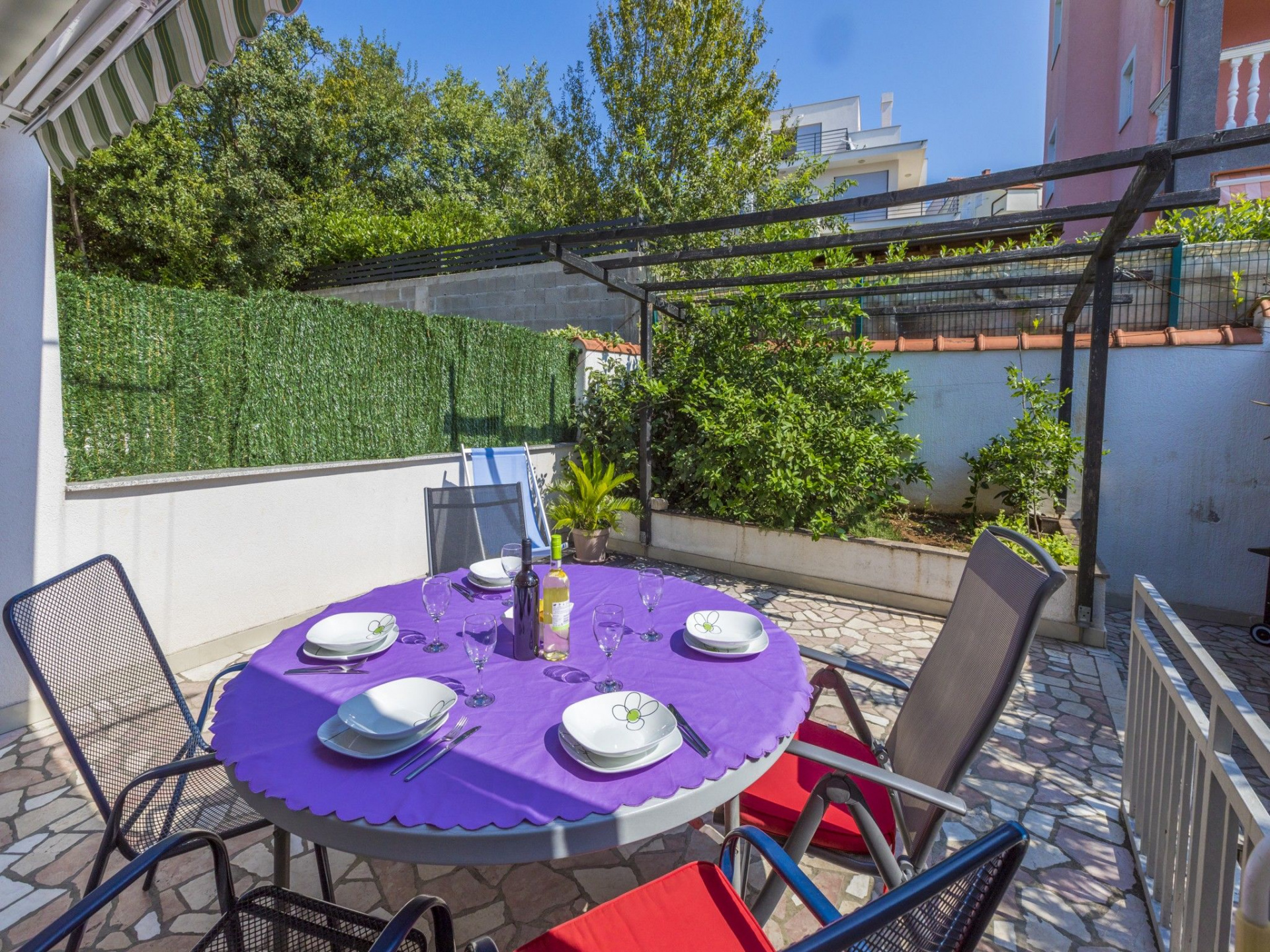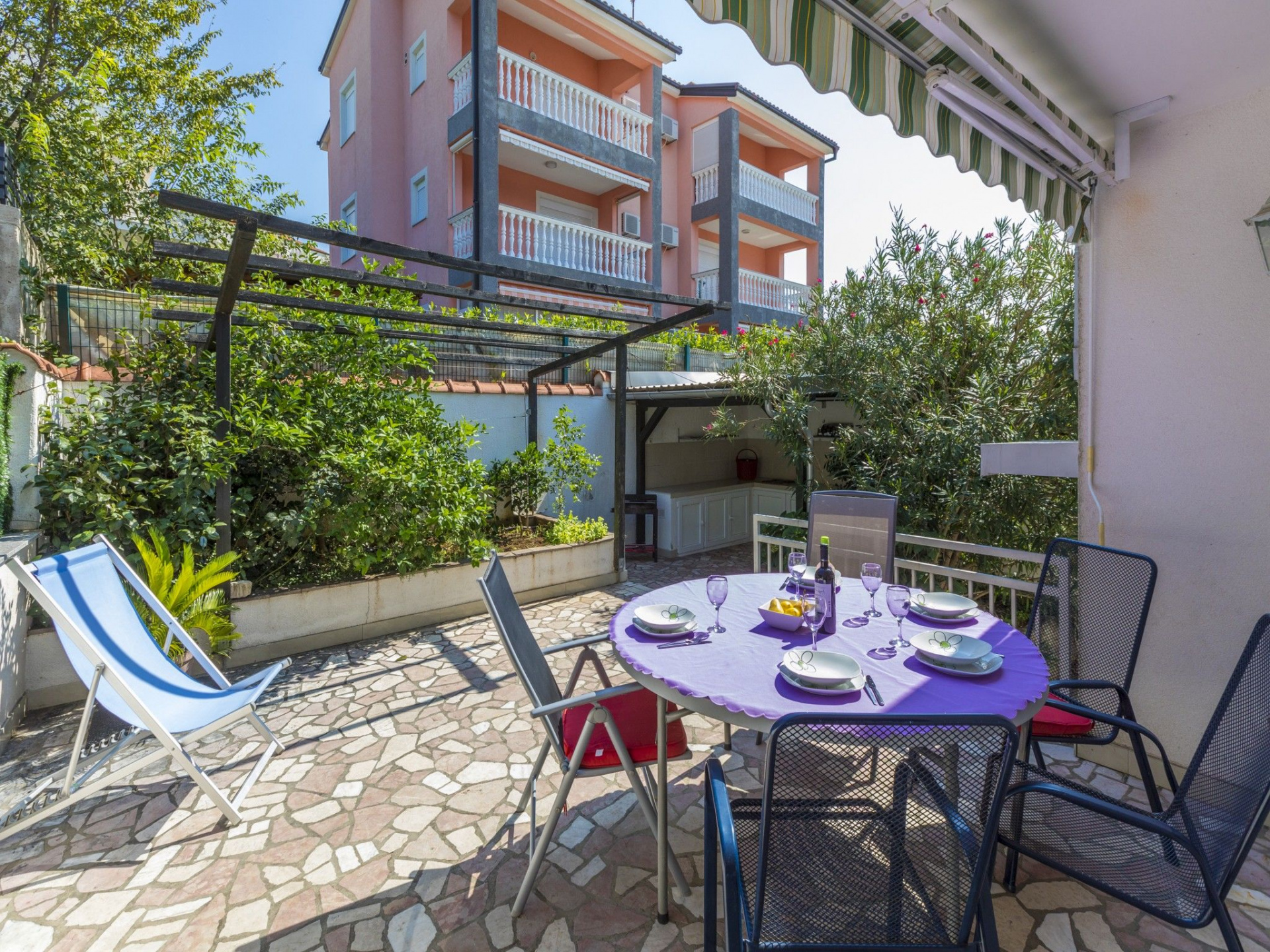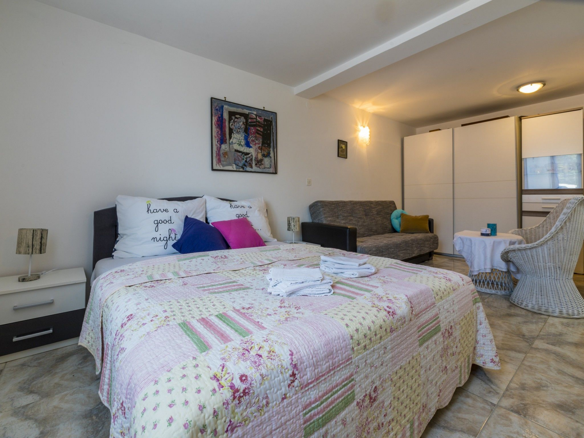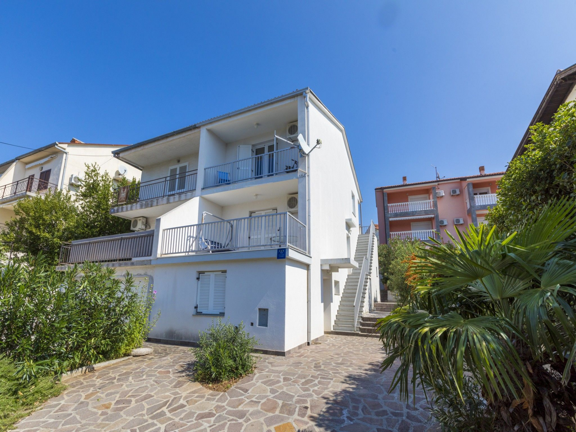 Egyéb 7Fő Általános információ Kategória: 3 Emelet: Kétszintes apartman Típus: A6+1 A ház alapterülete: 120 m2 Kilátás: tengerre Berendezés és felszereltség Klíma: helyiség része Radiókészülék: Igen Internet: vezeték nélküli Széf: Igen Vasaló: Igen Mosógép: Igen Ágynemű és törölközők: Igen Self check-in: Host check-in Az adott többletszolgáltatás felára a helyszínen fizetendő Klíma: felár nélkül Internet: felár nélkül Letéti díj a helyszínen fizetendő Megjegyzés: A szálláshely igénybevételének első napján a vendég köteles a szállásadónál 100 € letéti díjat fizetni, amelyet a szállásfoglalás utolsó napján visszakap, amennyiben a szálláshelyet sértetlen állapotban adja vissza. További információ és szolgáltatás Takarítás: vendégváltáskor A kert felszerletsége A ház körüli kert alapterülete/vrta: 50 m2 Kerítéssel vagy élósövénnyel elkerített kert: Igen Kültéri zuhanyzó: Igen Kerti ülőgarnitúra: Igen Konyha és nappali Edények és evőeszközök: Igen Sütő: Igen Főzőlap: Igen Hűtőgép: Igen Fagyasztó: Igen Mikrohullámú sütő: Igen Kávéfőző: Igen Vízforraló: Igen Toszter: Igen Fürdőszoba információ Zuhanyzós fürdőszobák száma: 3 Hajszárító: Igen Adatok a szobákról 1 Szoba kapacitás: 3 Pótágyak száma: 1 Kétszemélyes ágyak száma: 1 Adatok a szobákról 2 Kétszemélyes ágyak száma: 1 Szoba kapacitás: 2 Terasz/Erkély: Igen Adatok a szobákról 3 Kétszemélyes ágyak száma: 1 Szoba kapacitás: 2 Terasz/Erkély: Igen