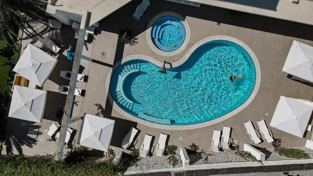 A vendégek kellemes, barátságos környezetben pihenhetnek, ahol a tenger kékje és a pálmafák zöldje nyújt mediterrán hangulatot. A nap strandolás vagy kirándulás után klimatizált, kényelmes szobák várják őket, modern felszereltséggel.