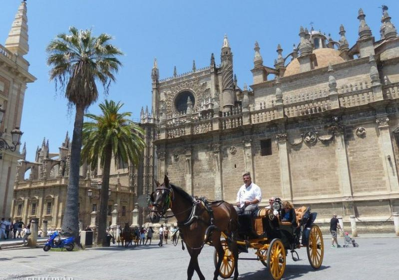 Reggel elutazás Sevillába, Andalúzia fővárosába. Városnézés: Plaza de España, Santa Cruz negyed (az egykori zsidó negyed), a világ egyik legnagyobb katedrálisa a híres harangtoronnyal (a Giraldával) stb.Továbbutazás Spanyolország szubtrópusi tengerpartjára, a Costa del Solra, a „Napospart”-ra. Szállás Torremolinosban vagy környékén (2 éj).