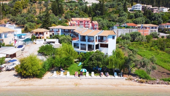 Az apartman Perigiali településen található, mely mára teljesen egybeépült a vele szomszédos Nidrivel. A szállás közvetlenül a homokos/kavicsos tengerparton fekszik, stúdióiból csodálatos kilátás nyílik a tengerre. Nidri sétálóutcájától kb. 950 méterre, kikötője kb. 1,3 kilométerre helyezkedik el.