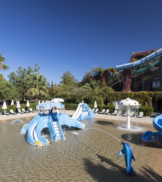 - 2 medence napernyőkkel és napozóágyakkal, relax medence, 25.000 nm-es aquapark 12 felnőtt és 13 gyermekcsúszdával, nappali és esti animációs programok, show-műsorok, élő zene, DJ előadások, szombat esténként gála est (dress code: elegáns fekete-fehér ruházat), mini és maxi klub (4-12 éveseknek), tini klub (13-17 éveseknek), játszótér, törökfürdő, szauna, diszkó, strandröplabda, darts, boccia, íjászat, asztalitenisz, wifi a lobbyban és a medencénél.
