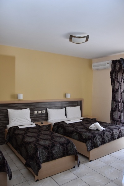 - 2-3 és 3-4 ágyas stúdiók: tágas, igényes berendezésű szobák, ahol a konyhasarok és az ágyak egy légtérben vannak. A stúdiók felszereltségéhez légkondicionáló (felár a helyszínen fizetendő, 42 EUR/készülék/hét), tévé, konyhasarok - mely a legszükségesebb eszközökkel felszerelt -, fürdőszoba zuhanyzóval, illetve kerti bútorokkal berendezett terasz tartozik.