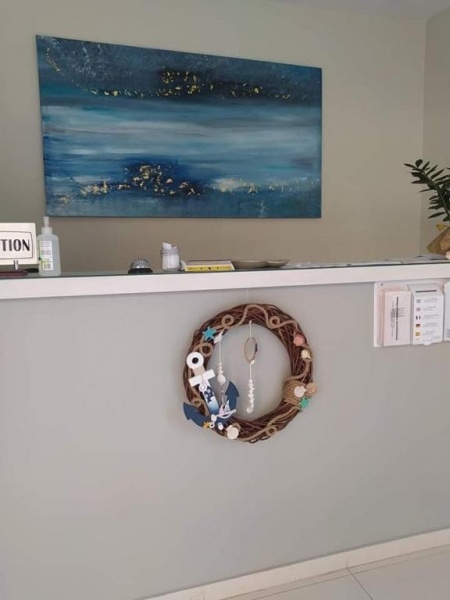A település főutcájától és központi részétől kb. 400 méterre található a családias, 2 különálló épületből álló aparthotel. A stúdiók a hátsó épületben találhatók, amelyet egy parkoló és udvar választ el a szálloda épületétől, amely közvetlenül a tengerparton helyezkedik el. A stúdiók kb. 80 méternyi távolságra találhatók a tengerparttól. Sétányi távolságra üzletek, tavernák, kávézók találhatók.