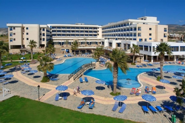 Fekvése: Paphos vonzáskörzetében, a Coral Bay övezetben, üdülővárosi, de mégis csendes környezetben, domboldalon, a kavicsos, köves tengerparttól 100 méterre található, klasszikus stílusú, régebbi építésű 206 szobás szálloda. A térség egyik legszebb strandja a homokos strand Coral Bay kb.10 perc séta (1km) távolságra, az üdülőrész központja 800 méternyire, a Paphos-i városközpont pedig kb. 12 km-re található. Buszmegálló a szállodától 400 méternyire.