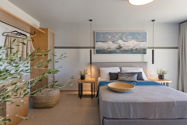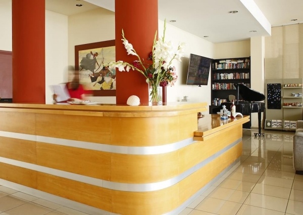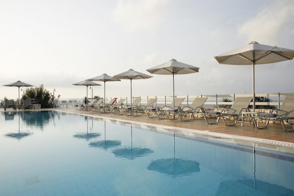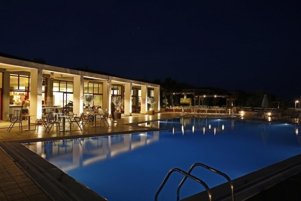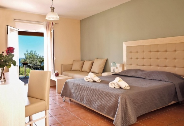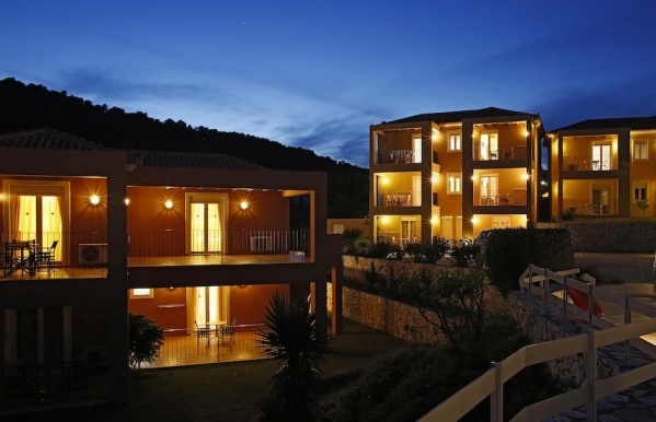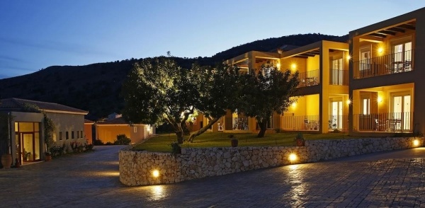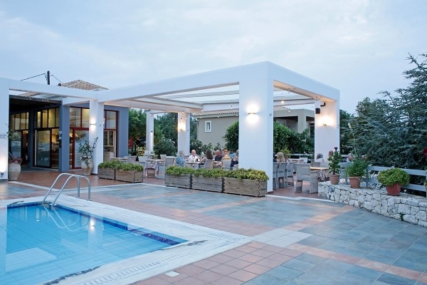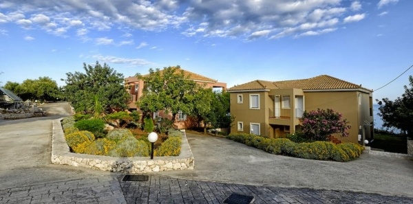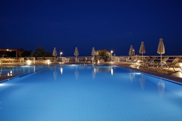 A főépületből és több melléképületből álló szálloda Skala határában, egy domboldalban fekszik, lélegzetelállító kilátással a sziget nyugati partjára. Skala központja kb. 2 km-re (ingyenes szállodai buszjárat), a menetrend szerinti busz megállója kb. 500 m-re.