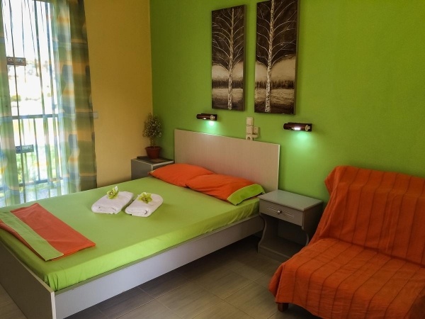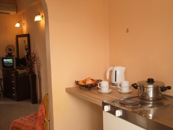 Csendes környezetben található barátságos apartmanház, a központtól sétatávolságra (kb. 500 méter), a homokos-kavicsos tengerparttól 250 m-re található. A közelben éttermek, tavernák, kávézók, üzletek sokasága várja kedves utasainkat. Buszmegálló csak 200 méterre található.