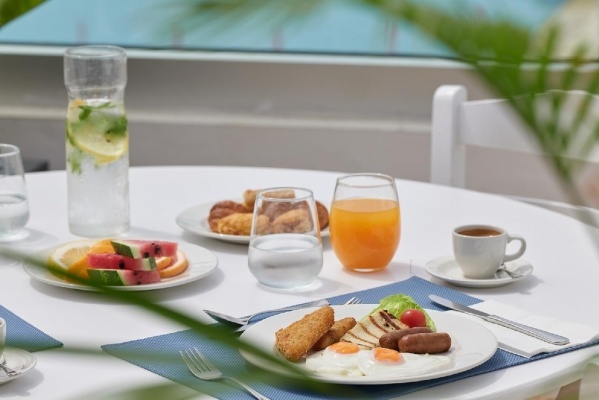 Étkezés: Félpanzió, büfé reggelivel és vacsorával. Friss gyümölcsök, pékáruk, hideg és meleg fogások, tojásételek, zöldségek, joghurtok és különféle italok - kávé, tea, friss gyümölcslevek - teszik teljessé a kínálatot. A vacsora is büfé formában zajlik, amely a nemzetközi és helyi ízek változatos kombinációját nyújtja. A vendégek helyi ciprusi specialitásokat is kóstolhatnak, valamint élvezhetik a tematikus estek változatos fogásait. Az all inclusive ellátás magában foglalja a napi három főétkezést - reggelit, ebédet és vacsorát -, amelyek büfé formában érhetők el, nemzetközi és helyi ízek változatos kombinációját kínálja. Az étkezések mellé különféle italokat kínálnak, beleértve a helyi alkoholos italokat, borokat, valamint az alkoholmentes frissítőket is, amelyeket a korlátlanul fogyaszthatnak a vendégek 10-24 óra között. A vendégek emellett több bár közül választhatnak, ahol széles italválasztékot kínálnak. Az italválaszték a szálloda által meghatározott az itallapokon ALL jelöléssel található. Mind a reggeli, ebéd és vacsorák során kiemelt figyelmet fordítanak az ételek minőségére, frissességére, és igyekeznek minden ételallergiát vagy diétás igényt is kielégíteni. Napközben snackek és könnyű hideg és meleg ételek is elérhetők, valamint jégkrémek, kávé és sütemények a délutáni órákban.