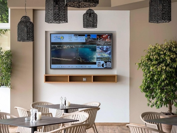 Étterem, 2 bár, játszótér, 40 m hosszú medence napágyakkal és napernyőkkel, gyermekmedence, parkolási lehetőség, internetsarok, autóbérlési lehetőség, szórakoztató programok: aqua zumba, aerobic, animációs programok.