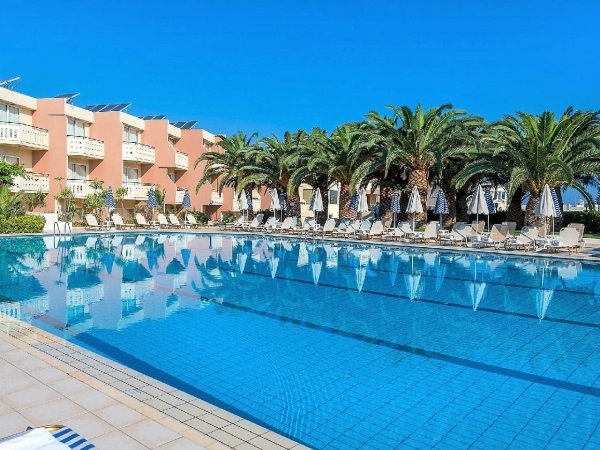Nagyon jó elhelyezkedésű,főépületből és háromszintes épületekből álló 130 szobás hotel, amely150 m-re található a Kék Zászlóval kitüntetett homokos strandtól, nyüzsgő helyen, éttermek és szórakozóhelyek közvetlen közelében. Chania városa csak 9 km.