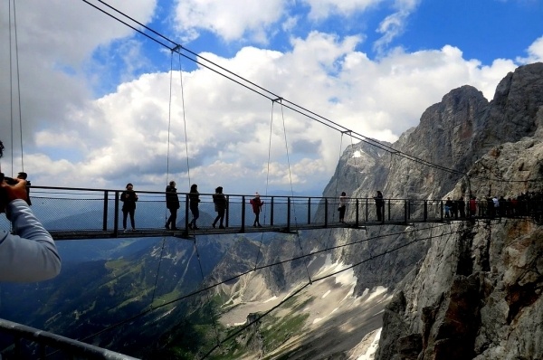 - a csaknem 100 méter hosszú függőhídon a Dachstein déli fala mentén sétálhatunk szédítő magasságban;