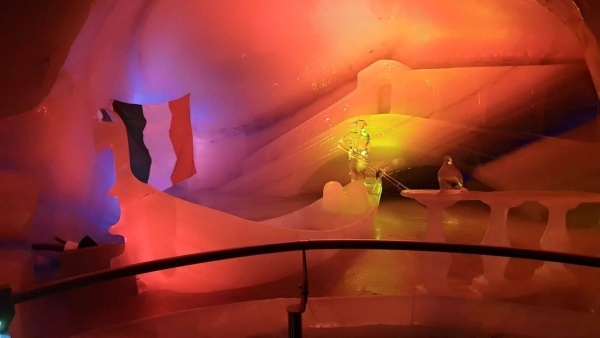 - a függőhíd másik végén belépünk a Jégpalotába, ahol évente más és más téma mentén kifaragott jégszobrok kápráztatnak el.
