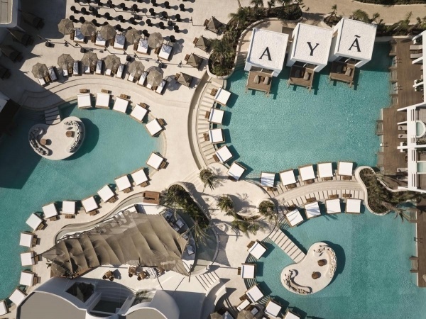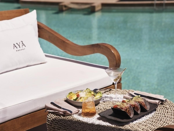 Fekvése: az Aya Resort egy vadonatúj, csak felnőtteket (20 éves kor felett) fogadó luxus szálláshely, Ayia Napa központjától kb 8 km-re, a Nissi Bay és a Makrinossos Bay strandoktól kb. 3km-re, az Olympic Lagoon Hotellel közelében található. Ez a kiemelkedően elegáns resort a kortárs mediterrán vendéglátás új színfoltja, ahol a nyugodt exkluzivitás és a sziget ihlette design áll a középpontban. Az Aya Resort összesen 48 lakosztállyal rendelkezik, melyeket a modern kényelem és a visszafogott elegancia jellemez. A kínálatban szerepelnek víz fölé épített bungalók, saját medencés kerti lakosztályok, valamint olyan egységek is, amelyek közvetlen kapcsolattal rendelkeznek a resort 3 000 m?-es főmedencéjéhez. Az Aya Resort kifejezetten azoknak az utazóknak készült, akik az élettel teli hangulat és a nyugodt elvonulás tökéletes egyensúlyát keresik. Az építészeti koncepciót a MITA & Associates Architects, a belső tereket az AT Design Studio jegyzi, Mykonos és Indonézia inspirációival. A természetes színpaletta, a texturált anyagok, a letisztult vonalak és a buja trópusi kertek laza, mégis kifinomult atmoszférát teremtenek, kézzel készített dekorációs elemekkel - például makramé napernyőkkel.