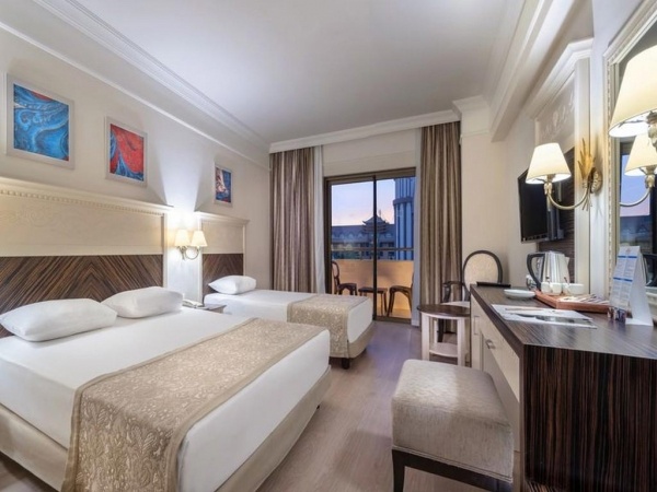 Szobák: 359 szoba o erkély o központi légkondicionálás o hajszárító o telefon o TV o széf o minibár o vízforraló o kávé- és teafőző készlet o wifi o standard szobák tájra néző kilátással: 23 m?, max. 2+1 fő o standard szobák oldalsó tengerre néző kilátással: 26 m?, max. 3+1 fő vagy 2+2 fő o családi szobák típus A: 32 m?, max. 4+1 fő, 2 hálószoba, 1 fürdőszoba o családi szobák típus B: 55 m?, max. 6+1 fő, 2 hálószoba, 2 fürdőszoba