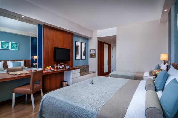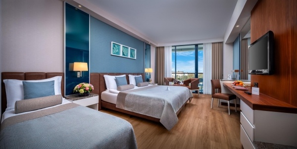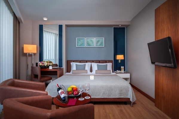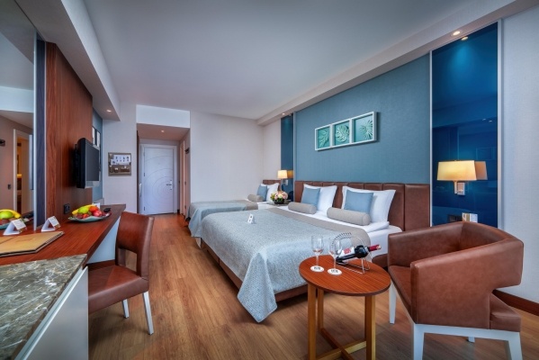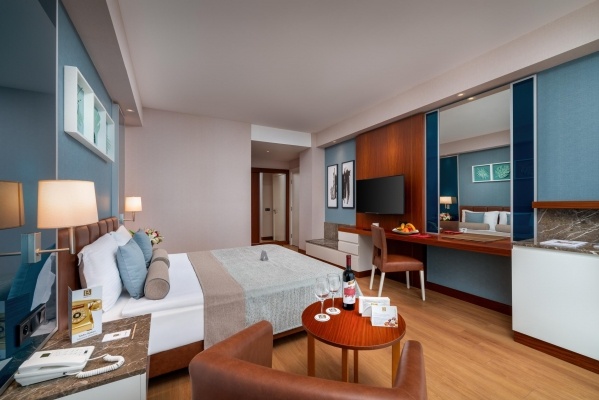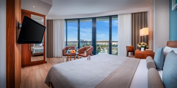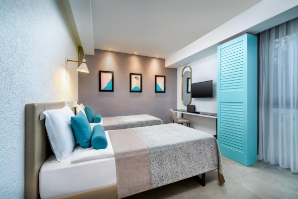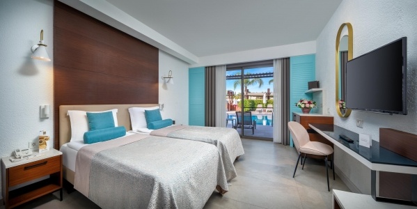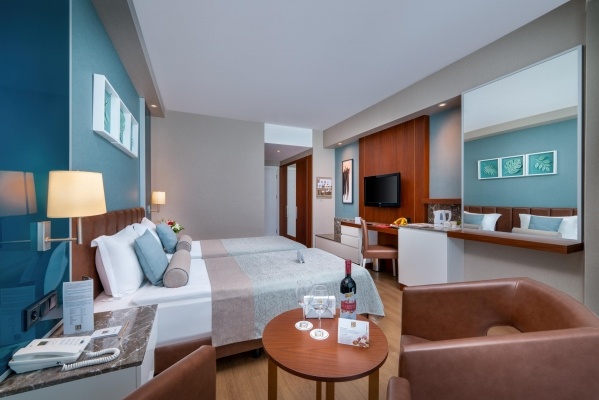 |A szobákat légkondicionáló berendezéssel, központi fűtéssel és fürdőszobával szerelték fel. A vendégek a teraszon, illetve az erkélyen is kényelembe helyezhetik magukat. A legtöbb szoba kellemes légkörét oldalsó, tengerre néző kilátás teszi teljessé. A szobák berendezéséhez tartozik egy franciaágy. Pót- és gyerekágyat kérésre tudnak biztosítani. Ezen kívül van széf és minbár is. Az alapfelszereltséghez tartozik egy tea-/kávéfőző is. A nyaralás kényelmét szolgálja az internet-hozzáférés, a telefon, a TV-készülék és WiFi. Mozgáskorlátozottaknak kialakított szobák is foglalhatóak. A fürdőszobában zuhanyzó található. A fürdőszobában található hajszárító és telefon a mindennapi kényelmet szolgálják. Akadálymentesített fürdőszoba is foglalható. Családi szobát és nem dohányzó szobát is foglalható.