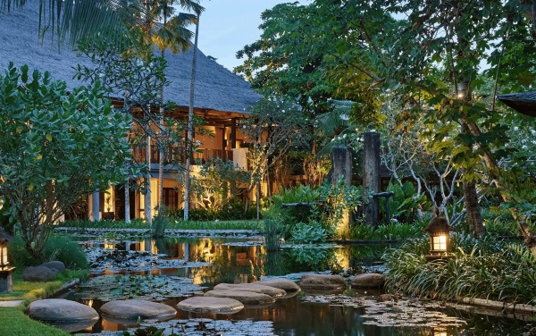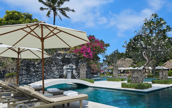 9 hektáros buja trópusi kertre épülő tengerpari szálloda Bali fő nevezetessége közelében található.